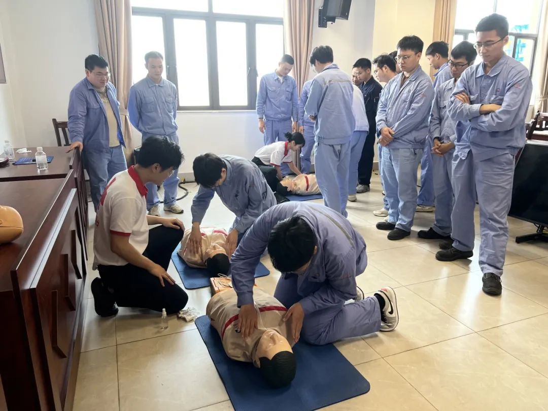 开展救护员培训是有效增强意外事件紧急救护能力的重要举措,确保在突发状况时,能够迅速、有效地进行应急处置,最大限度地保障作业人员的人身安全。此次培训采取理论与实操相结合的方式进行。培训期间,授课老师详细讲解了心肺复苏术、气道异物梗阻急救法、自动体外除颤仪(AED)使用、创伤包扎等内容,并结合实际进行专业模拟演示。培训现场气氛热烈,学员们认真参与、积极互动,纷纷表示通过这次培训不仅有效掌握应急救护的正确方法,也提高了应对突发事件的现场救护能力。