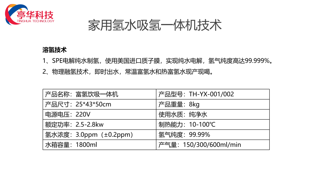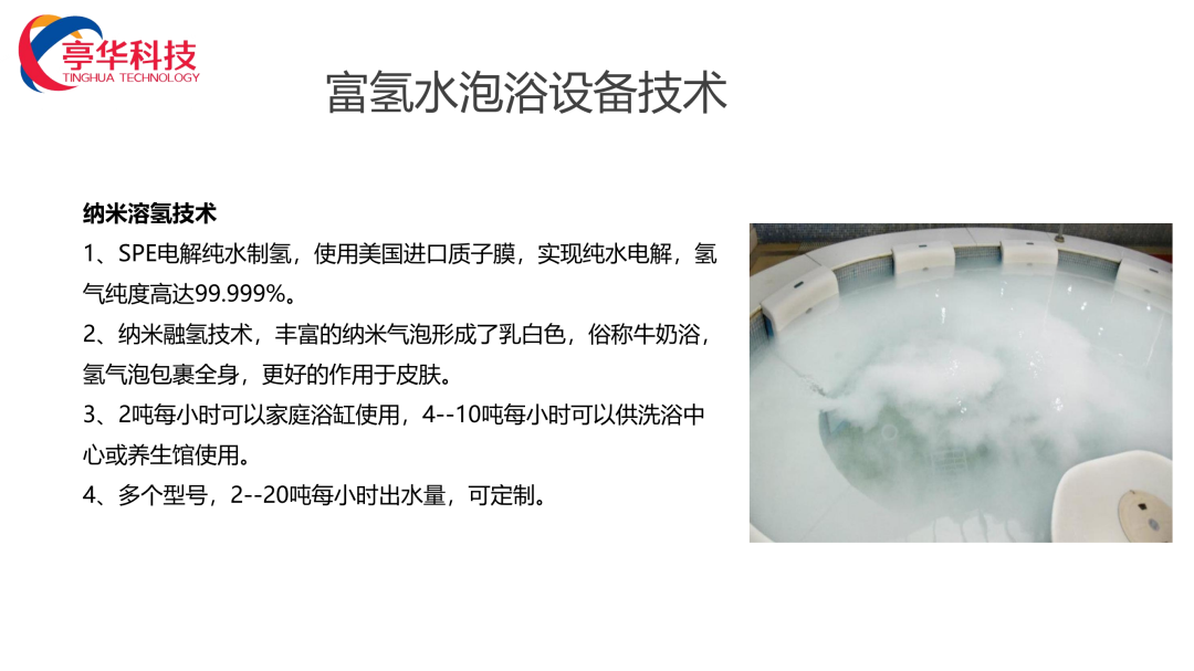 河南亭华智能科技有限公司位于古都洛阳,公司依托云计算大数据、物联网、工业创新、人工智能等新一代信息技术的“产业互联网应用引擎”,在氢分子应用方面做出了深度研究,先后研发出商用富氢水机,家用富氢水机,工厂用大型富氢水设备,商用吸氢机,家用吸氢机,商用富氢泡浴机,家用富氢淋浴机,富氢汗蒸仓,富氢水农业灌溉机等多款富氢系列设备,公司立足高端技术研发,全力打造行业领先标准,致力于各行业资源整合。