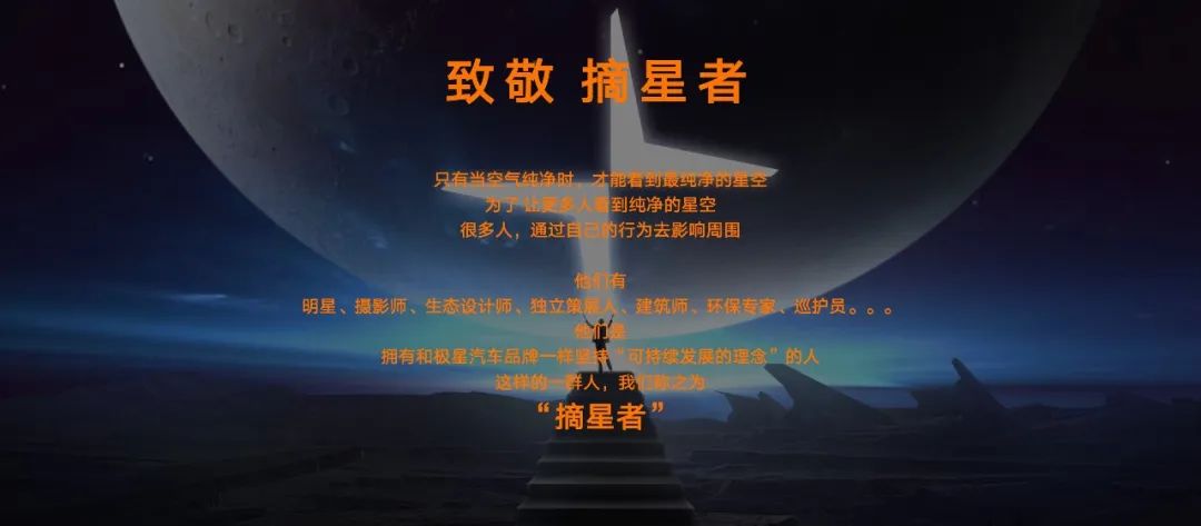 非常乐见极星品牌与我们当初的提案思路“不谋而合”,也希望能坚持我们基于“摘星者”精神提出“摘星之旅”等系列品牌营销规划。