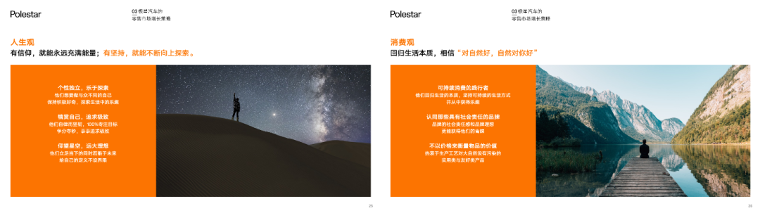 “摘星者”精神与极星的目标人群非常契合。他们是“有信仰,就能永远充满能量;有坚持,就能不断向上探索”的人生观;他们“回归生活本质,相信‘对自然好,自然对你好’的消费观;所以,我们认为“摘星者”精神可以让目标客户在他们选车时,因为极星品牌符合自己的价值观而选择极星。