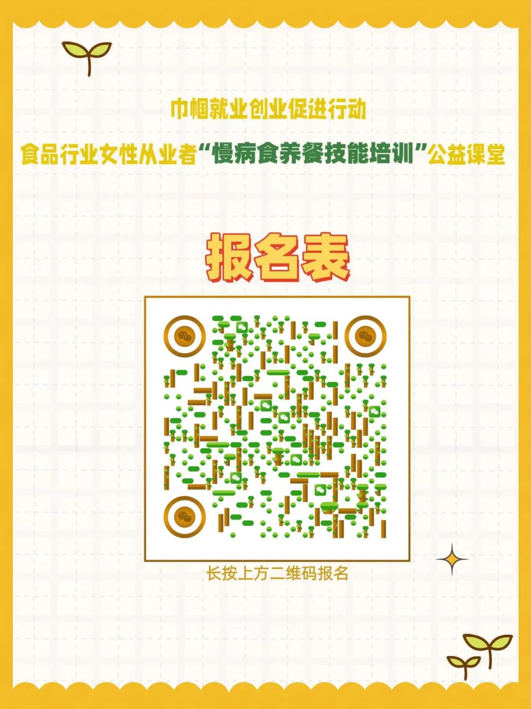 为响应河南省妇联“巾帼就业创业促进行动”,做好女性创业就业培训和服务,结合我国慢病(糖尿病、高脂血症、高血压、高尿酸血症、肥胖)发展特点,食养健康是重中之重,由河南省妇女儿童发展中心主办,河南省妇女儿童发展中心女性事业部、河南省女性社会组织服务指导中心承办,郑州市营养协会执行的“巾帼就业创业公益项目”拟开展-食品行业女性从业者慢病食养餐技能培训,助力女性提升就业技能,帮助女性实现就业、创业。拟全年开展五期。