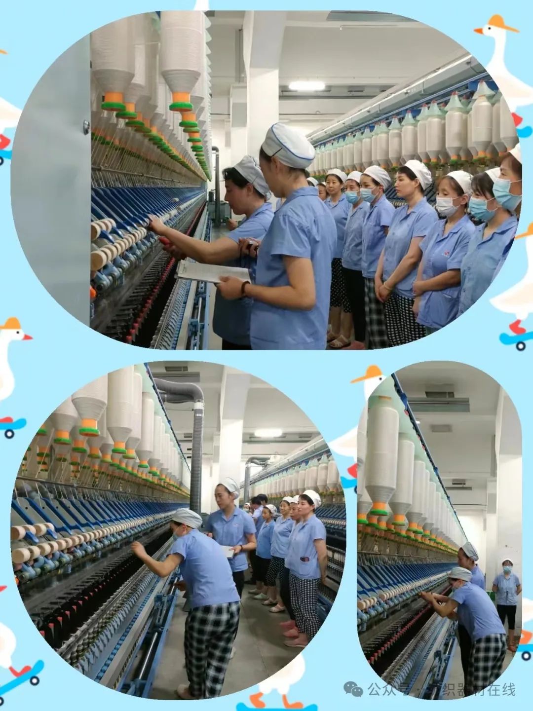 作品描述:千纱万线红围腰,示范引领促生产。西纺细纱千万纱,情丝缠绕你我他。