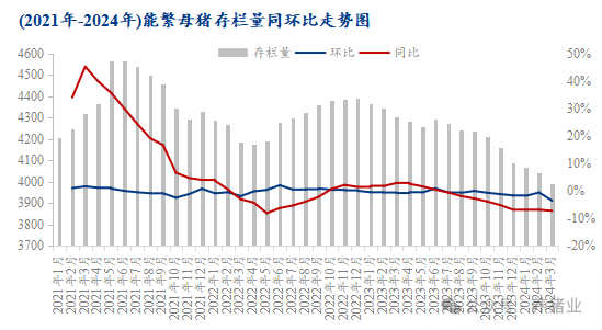 依照近期农村部数据显示,3月末全国能繁母猪存栏3992万头,同比下降7.3%,相当于3900万头正常保有量的102.4%,处于产能调控绿色合理区域。且能繁母猪存栏环比变化已大致维持10个月环比下降趋势,对应2024年5月后供给压力逐步减轻。