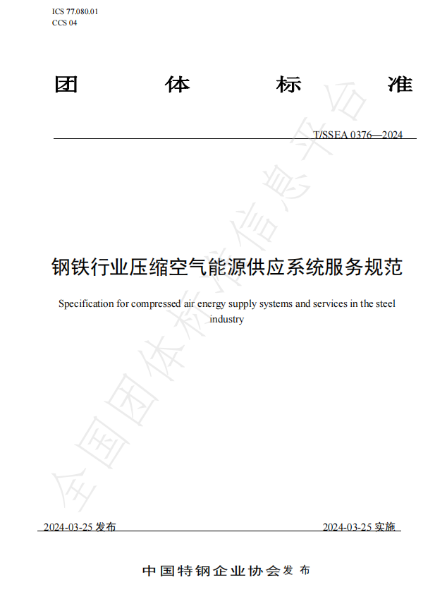 近日,由丰电科技、爱景科技牵头主编的首部《钢铁行业压缩空气能源供应系统服务规范》(T/SSEA 0376 – 2024)标准正式发布实施。