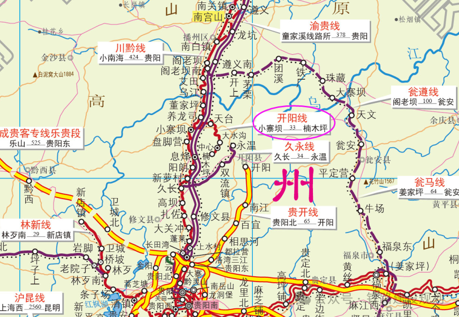 开阳支线铁路,由川黔线小寨坝站引出,终到开阳金中镇楠木坪站,全长32公里,1959至1970年分段建成通车,是开阳磷矿的重要外运通道。
