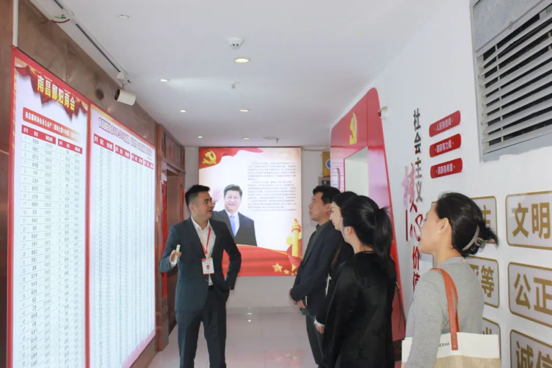 在参观商会党建“五红工程”结束后,来访客人一行还参观了“鄱商大厦总部经济企业服务中心”,秘书长徐胜平介绍了南昌鄱阳商会打造鄱商大厦总部经济服务中心的宗旨和意义,并就建设工作做了简要介绍。
