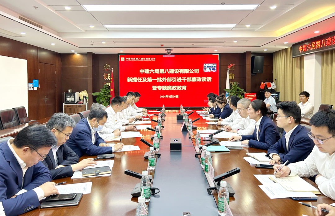 中建六局第八建设公司纪委坚持防线前移、刀刃向内,做细做实领导干部廉政谈话,抓早抓小、防微杜渐,让廉政谈话成为管在日常、抓在经常,多样化开展廉洁警示教育工作,推动层层建立廉政谈话机制,推动政治监督落实落细,以高质量监督为企业高质量发展保驾护航。