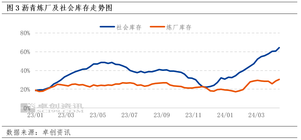 生产利润的深度亏损,叠加今年沥青刚性需求恢复缓慢,使得炼厂生产沥青的积极性较为一般,沥青装置开工负荷率整体处于低位波动。