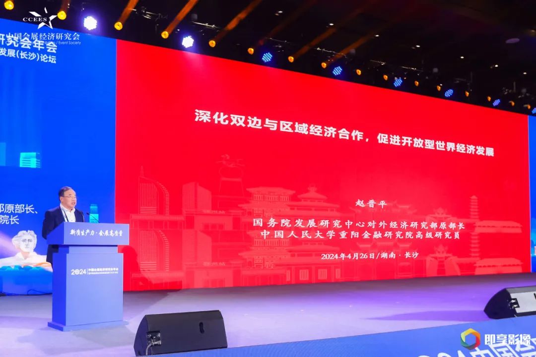 国务院发展研究中心对外经济研究部原部长、海南省开放型经济研究院名誉院长赵晋平作《深化双边和区域经济合作,促进开放型世界经济发展》主旨演讲。