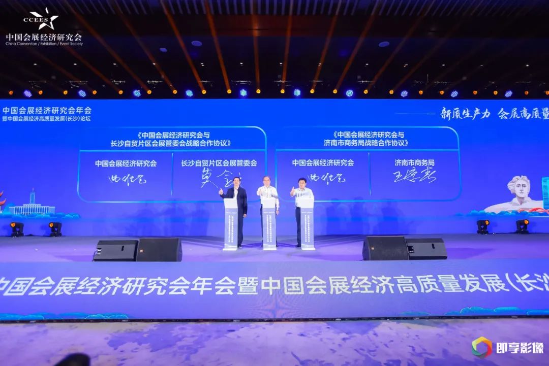 现场还进行了中国会展经济研究会与中国(湖南)自由贸易试验区长沙片区会展管委会、济南市商务局战略合作签约以及长沙地区多个项目合作签约。