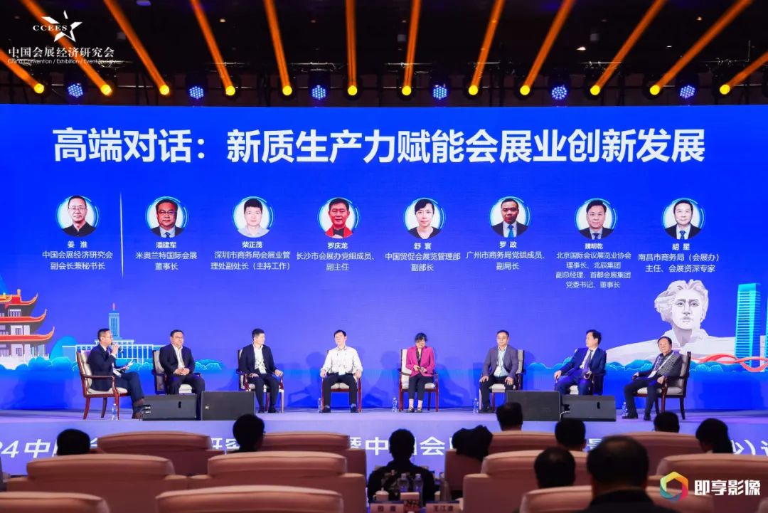 成员、副局长罗政,长沙市会展办党组成员、副主任罗庆龙,北京国际会议展览业协会理事长、北辰集团副总经理、首都会展集团党委书记、董事长魏明乾,深圳市商务局会展业管理处副处长柴正茂(主持工作),南昌市商务局(会展办)主任胡星,米奥兰特国际会展董事长潘建军7位产政学研嘉宾为与会者带来“新质生产力赋能会展业创新发展”前瞻性的思想碰撞。