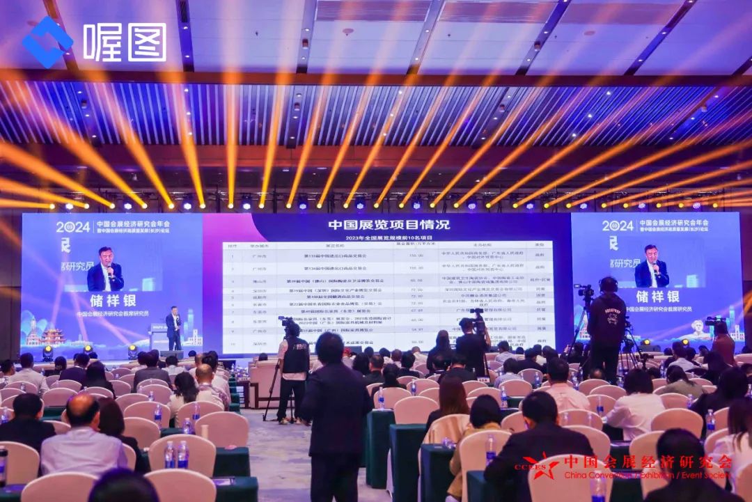 中国会展经济研究会秉承会展研究宗旨,高度重视会展发展研究,不断组织开展和推动会展发展理论研究、政策研究、实践研究、行业统计和市场调研。会上,中国会展经济研究会首席研究员储祥银发布了《2023年度中国展览数据统计报告》。报告显示,2023年展览业全面恢复,展览面积接近2019年水平,全国总共举办线下展览7,852个,展览总面积为14,345万平方米,较2022年分别增长192.77%和195.02%。