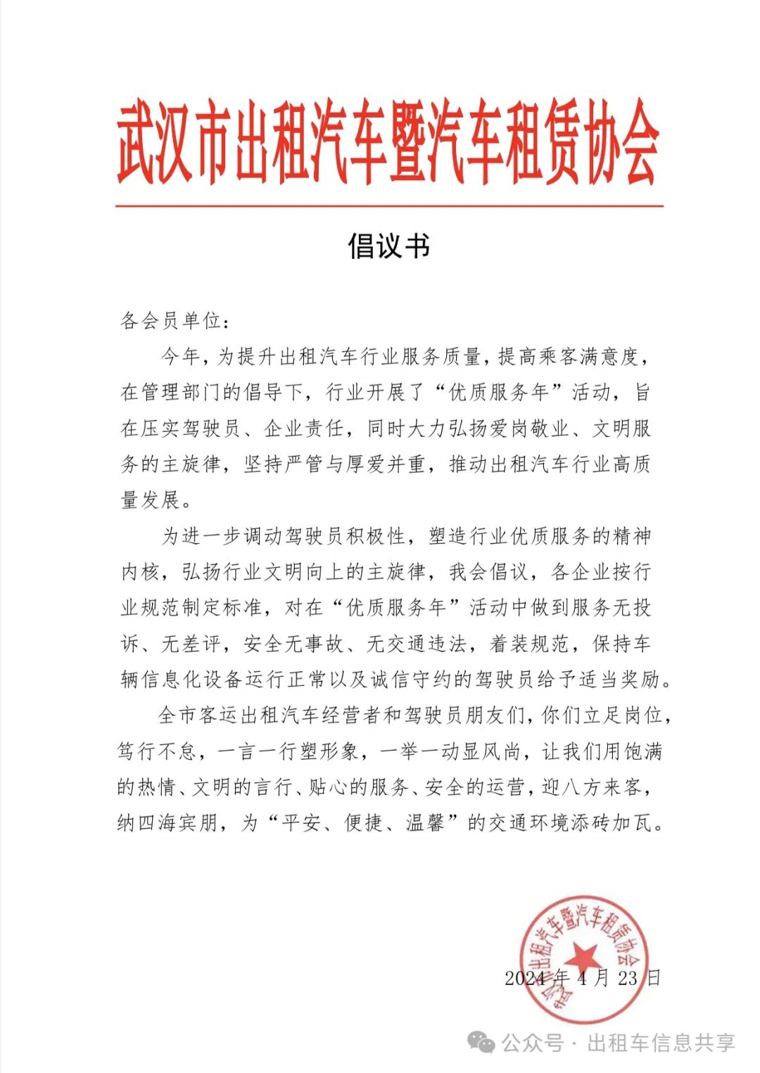 目前营运市场不景气,特别是很多景区及三站一场平台扫码拉客现象日趋严重,导致很多司机跑不出钱,公司也是心知肚明的。倡议书是协会发表的,但是协会的成员也是各个公司组成的,换句话说,这次的奖励,和之前减租300是一样的,给司机让利的行为。