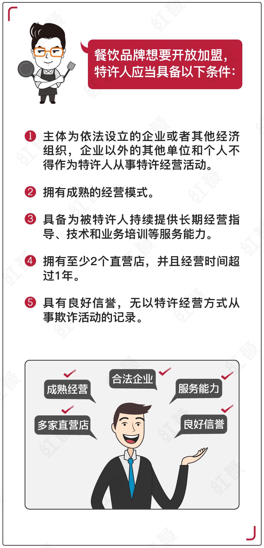 开放加盟的餐饮品牌必须对商标、服务标志、独特概念、专利、商业秘密、经营诀窍等拥有所有权。