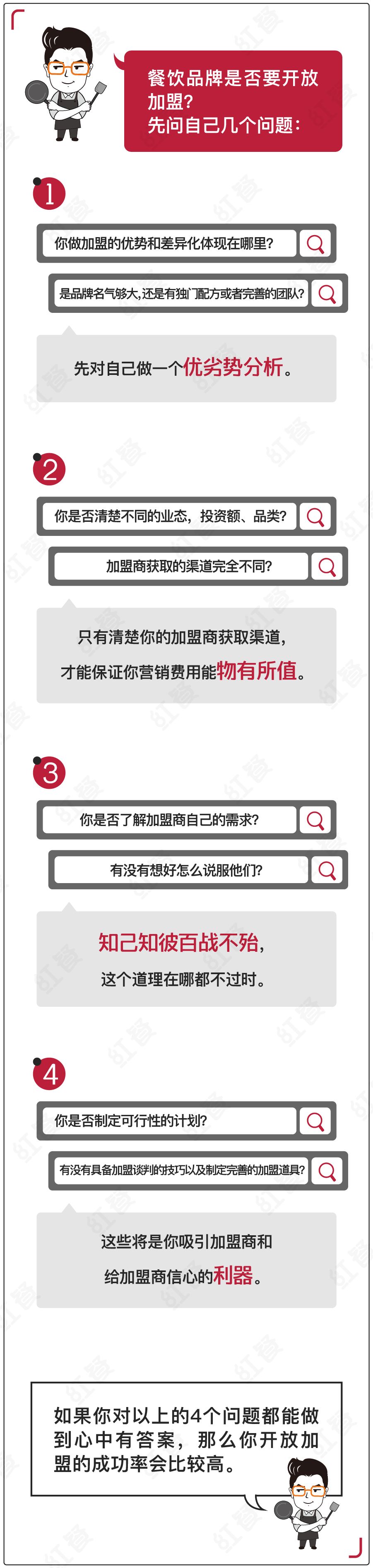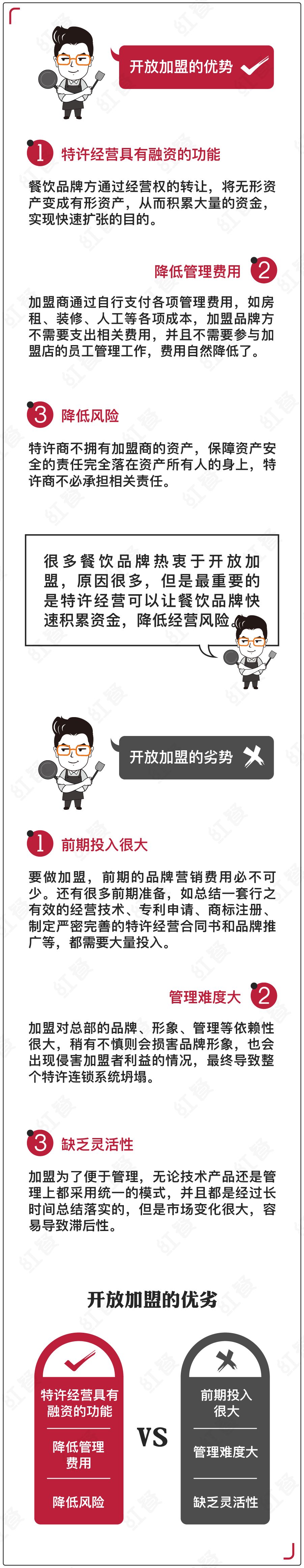 任何事情都是有两面性的,加盟也是一把双刃剑。做直营连锁还是开放加盟做特许经营,这些都取决于各位餐饮老板对自身企业的定位和方向把控。