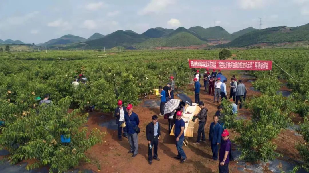 砚山县着力引进云南彩标农业公司等农业开发公司发展林果,同时培育应菊、诏然等林果专业合作社,发展红蜜桃、李、苹果、核桃等经济林果种植。建成维摩万亩桃、者腊万亩李等林产业基地,各乡(镇)林产业发展各具特色,百花齐放,乡(镇)间交流学习有阵地,林农就近学习有基地。公司(合作社)高标准建设林果基地,高投入,大产出,建园2—3年就能挂果有收益,让周边农户看得见,学得成,近几年以来公司(合作社)建经济林果示范基地9940亩,带动农户4941户发展林果种植46500亩,多数喜获丰收。