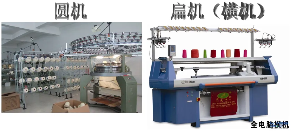纬编机:一般是圆筒机和扁机(横机),圆筒机又分为单面机和双面机,单面机分为平纹布,双位衣机,毛巾机,吊线机,自动间机及提花机;双面机分为互锁机,罗纹机,自动间机和提花布。
