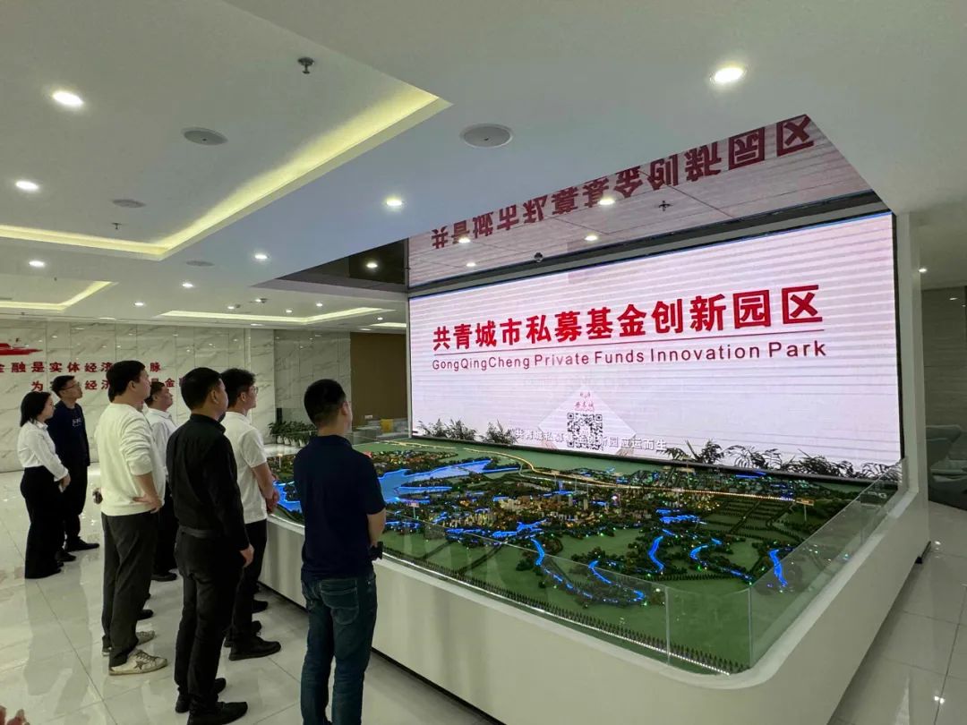 在共青城基金小镇,全体成员仔细了解共青城市在金融创新、产业发展等方面的成果和经验,探讨进一步深化合作可能性与机会性。
