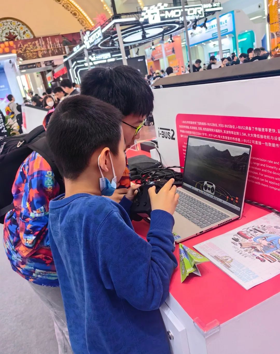 为了让观众对富斯产品更有直观感受,我们精心准备了AFHDS3、ANT、AFHDS2A、IBUS2等各系列产品展示版,还有模拟器,让现场观众感受参与的乐趣。