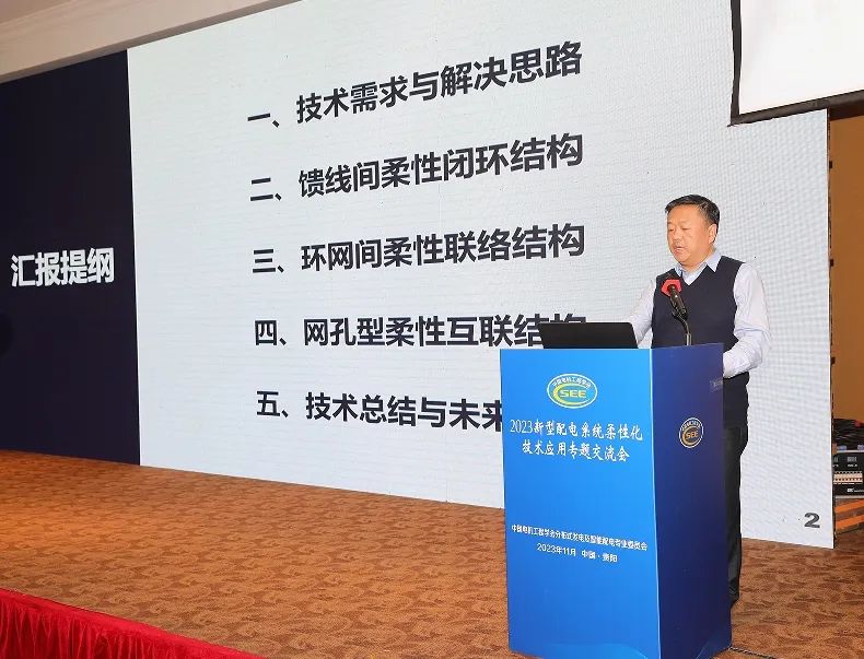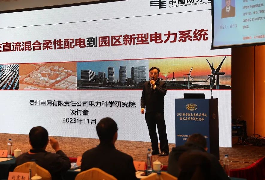 贵州电网有限责任公司副总经理段荣华、南方电网科学研究院副院长郭琦致欢迎词。会议围绕新型配电系统柔性化技术的研究进展、应用案例、挑战与展望等议题展开了深入探讨。南方电网科学研究院副院长郭琦、国网经济技术研究院有限公司专家宋毅、南网公司战略级高级专业技术专家李庆生、贵州电网公司电力科学研究院副总经理谈竹奎等多位专家发表了精彩的主题报告。