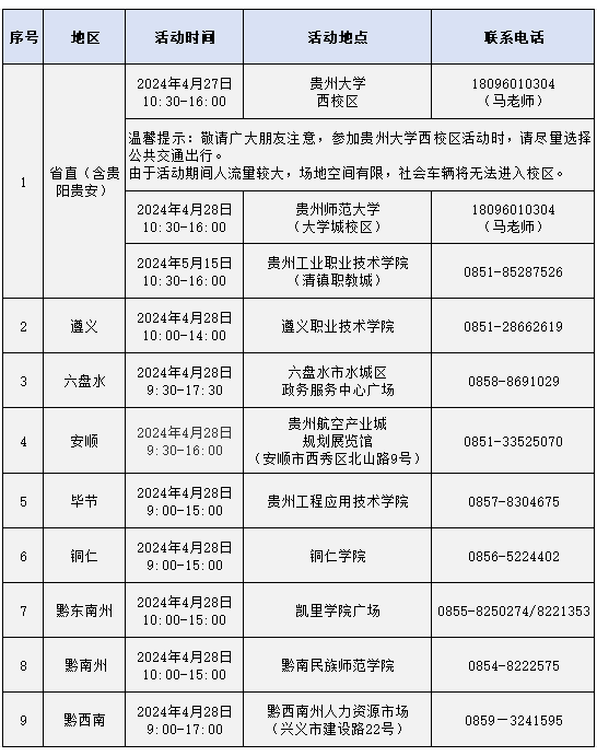 2024年4月28日 10:30-16:00 贵州师范大学(大学城校区香樟广场)
