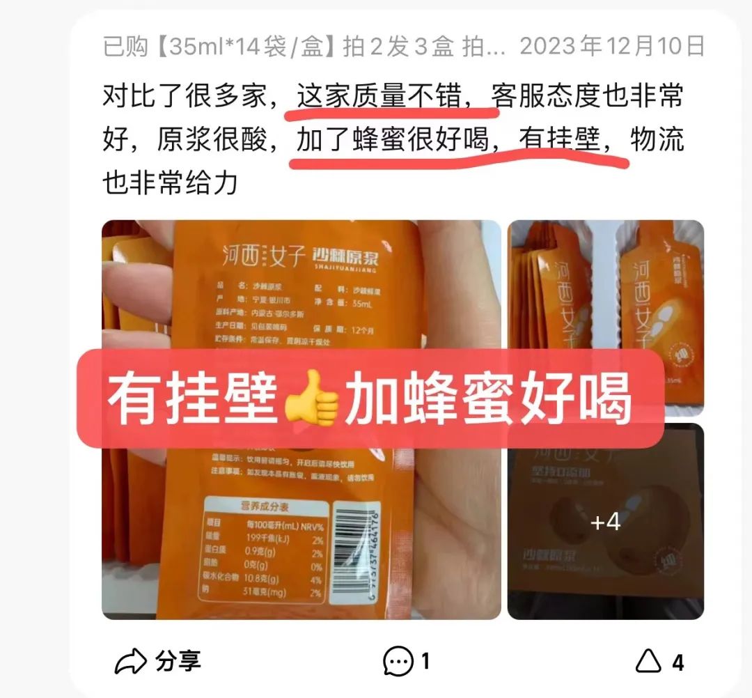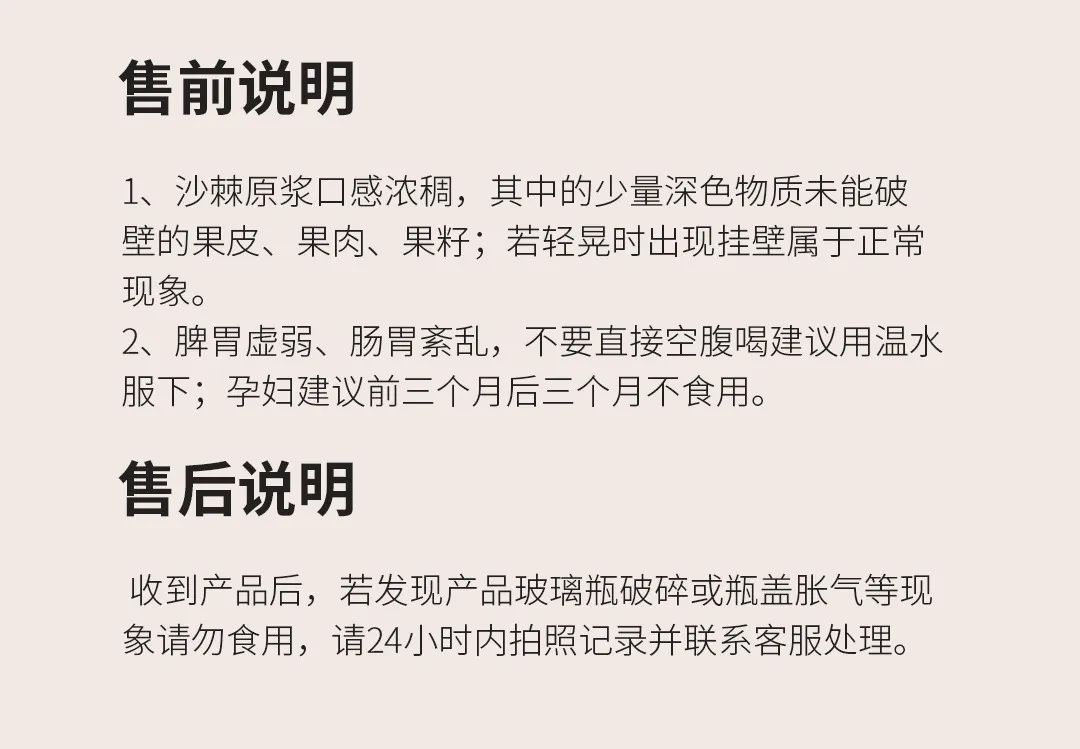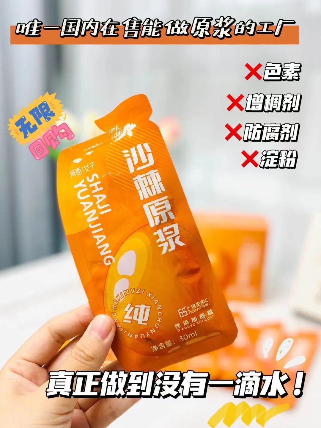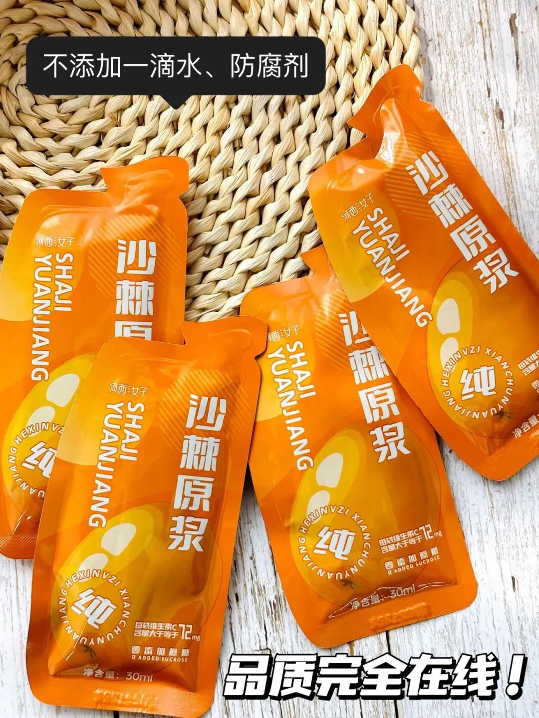 宝子们,河西女子品牌的沙棘原浆,国内唯一在售能做原浆的工厂,原本淘宝199元10袋,因包装外盒印错秒杀99元40袋,散装发货,没有外盒。是品牌方直发的,介意勿拍。