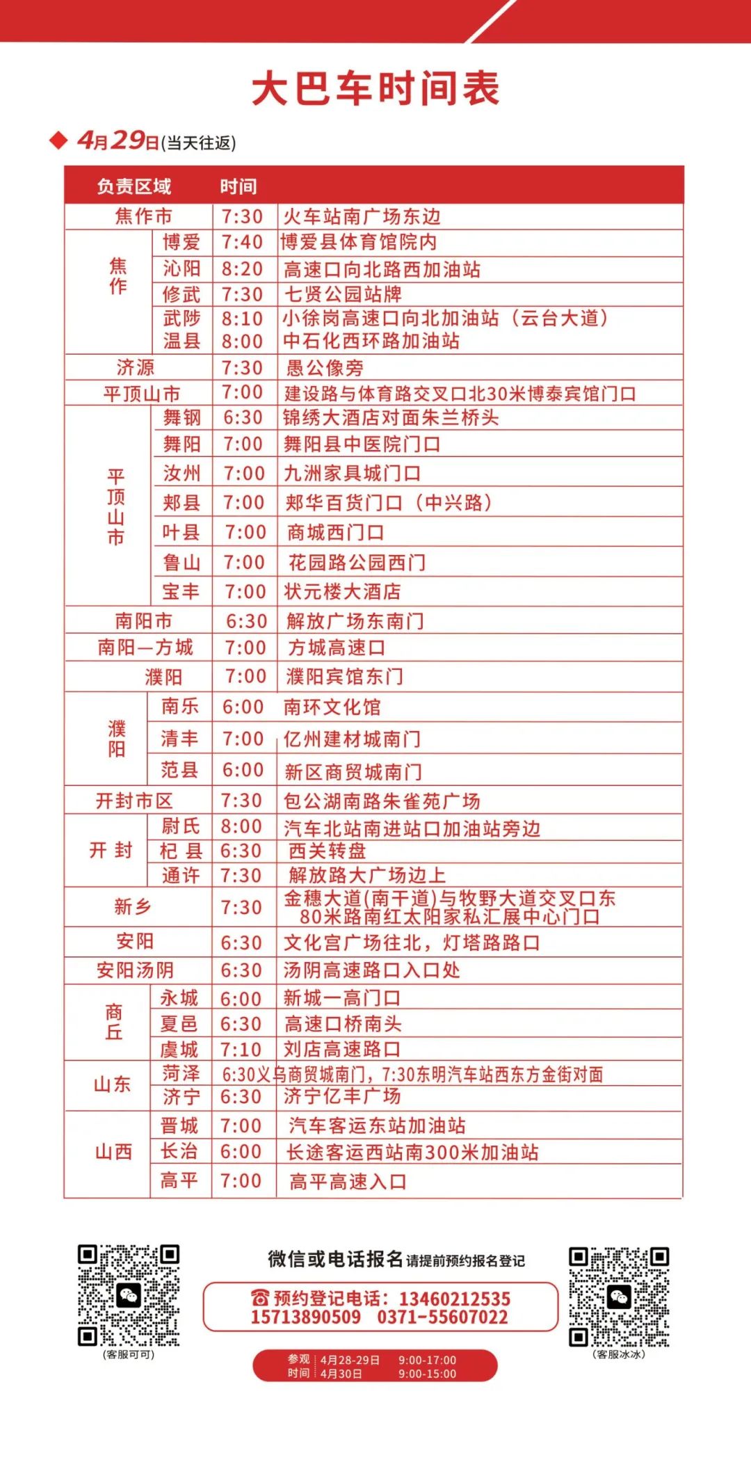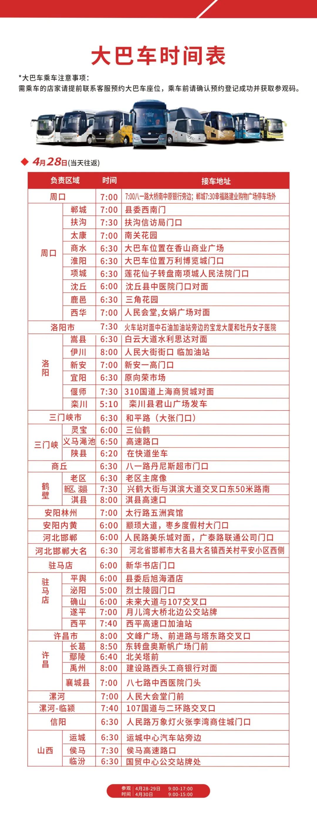 本届郑州国际美业博览会,辐射河南、河北、山西、山东、陕西、湖北、安徽、江苏、天津等地区(详细地区如下),为了让专业观众参观更便利,商贸对接更精准!组委会推出专业观众优享免费巴士接送观展服务。(位置有限预约从速)