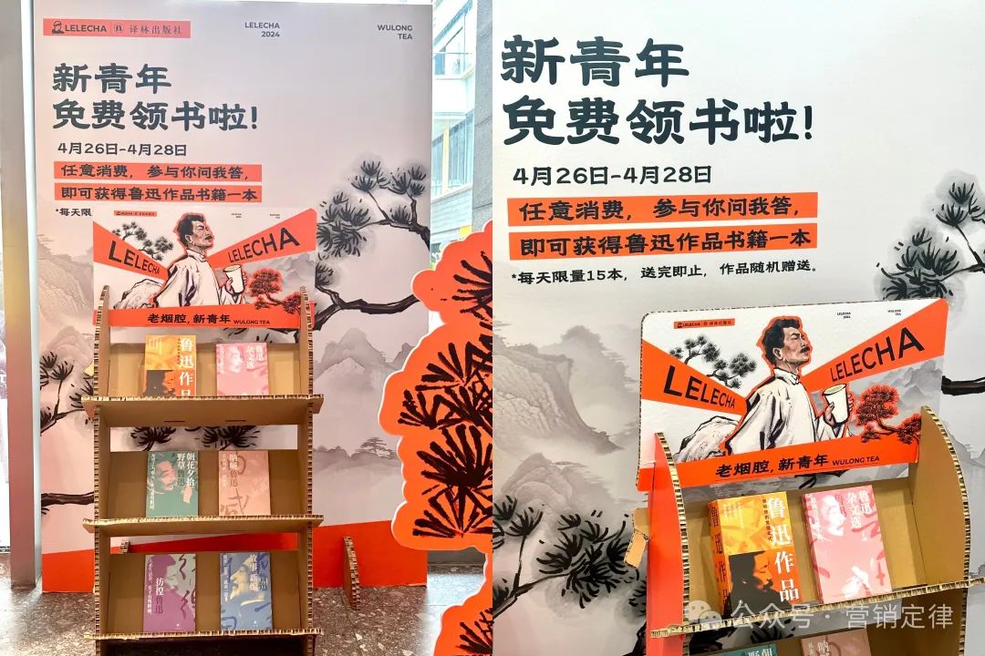 但简单的 IP「贴牌」显然并不符合读书日的深度,乐乐茶还在主题店开设了「你问我答」活动,任意消费答对 2 题即可获得鲁迅作品一本,同时品牌还向中国儿童少年基金「爱心书箱」项目捐款 20 万元,愿中国青年都能向上走。从中小学语文课本的常客,到《觉醒年代》中人们竞相模仿的对象,再到世界读书日和奶茶联动,随着大家对鲁迅创作背景及其本人了解的深入,越发发现他在严肃外表下的人格魅力,而这又促使更多年轻人开始对文学产生兴趣,形成良性的循环。