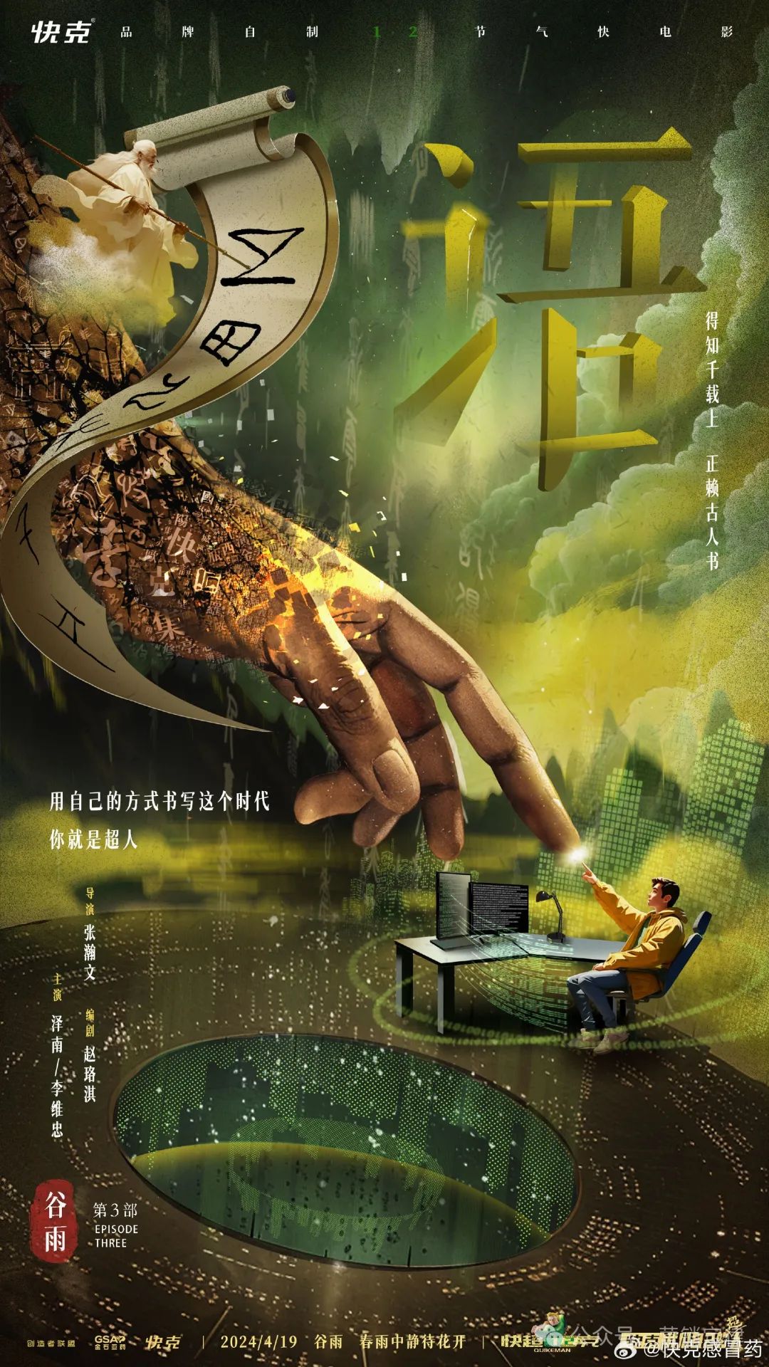每一份工作都有它存在的意义,完成应尽的职责,担当应有的使命,你就是超人。快克于谷雨时节推出品牌快电影《语》,不仅是纪念仓颉造字的伟大壮举,更颂扬无数如陈维般在各自领域默默奉献的平凡人。