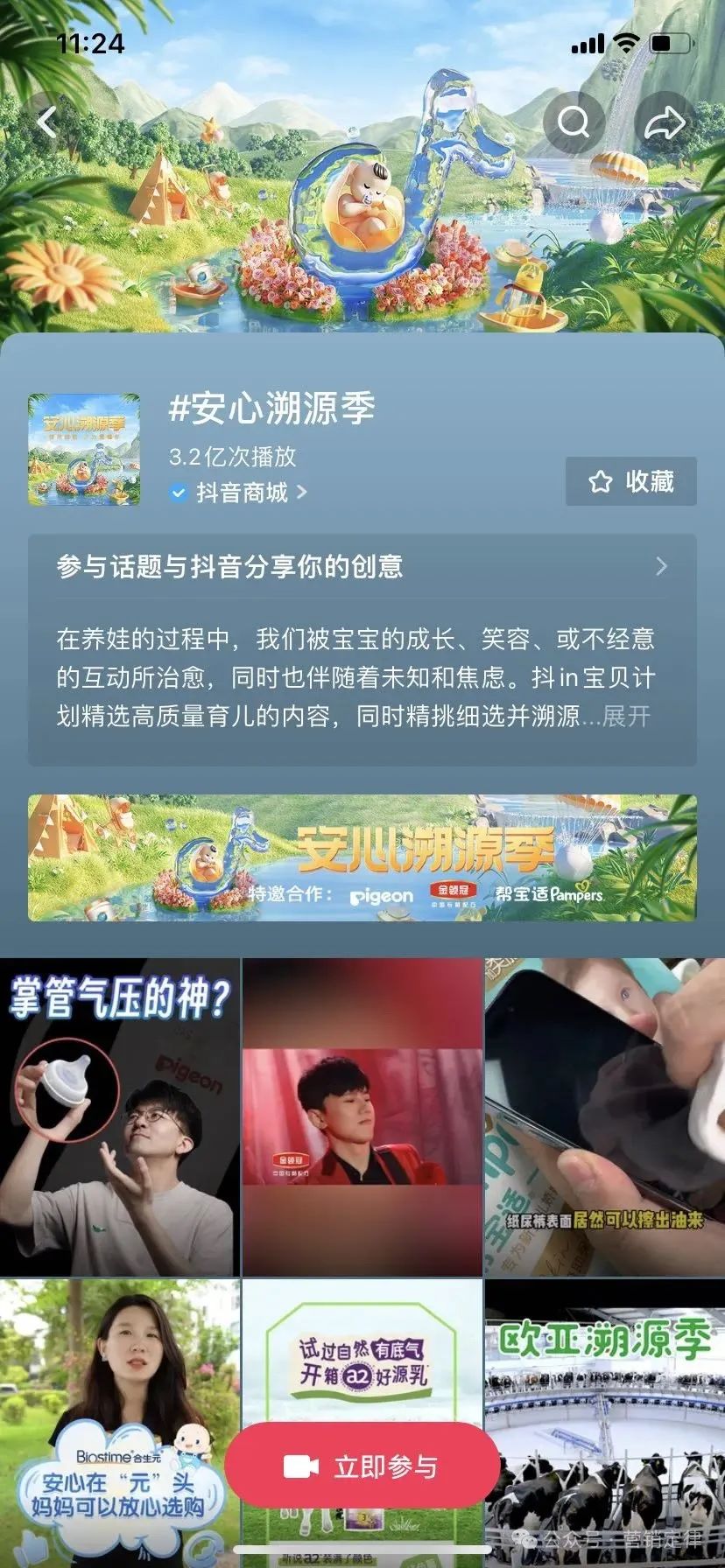 活动伊始,「抖 in 宝贝计划·安心溯源季」首先联合央视网以「如何育儿」这一普遍关注的话题热点为切口,通过亲子概念大片强发声,快速拉满话题度,有效提振品牌影响力与感知力。其次,活动联合了@主持人周洲 、@傅首尔、@郭小胖等多位明星、达人与品牌主理人担任「亲子安心溯源大使」,通过分享自己的育儿观念和选品诀窍,以扩散效应再次引发用户对活动的关注与共鸣。此外,活动同步上线了#人类幼崽 1000 天成长 VLOG 热点话题,承接用户被激活的分享欲,借势用户的讨论热情,助推活动破圈,并在其中激发用户安心好产品的好奇与需求。