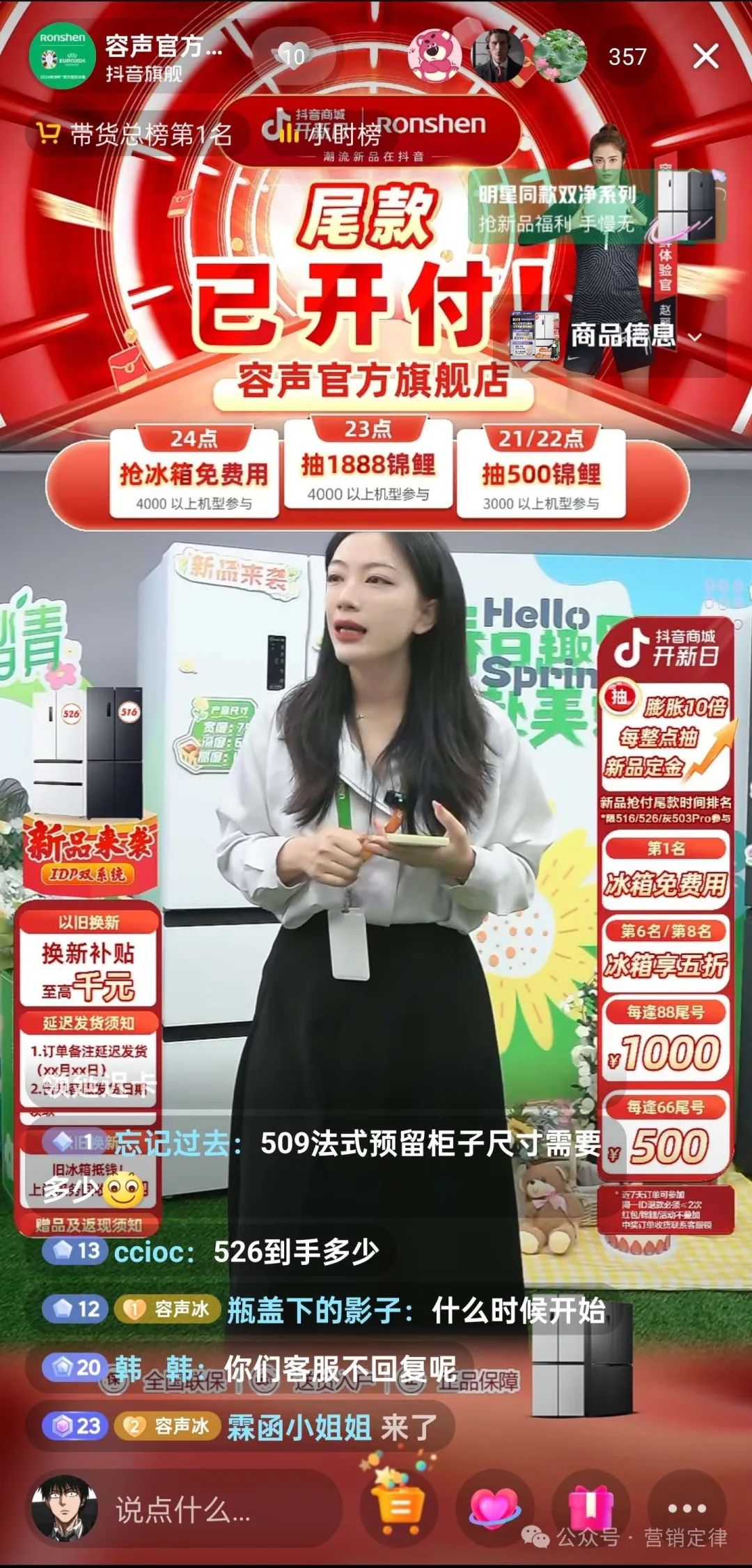 直播侧,容声邀请三只羊、牛哥说家电、东方甄选美丽生活等头部达人沉浸式带货,并在直播间内上线福利抽奖活动,让用户在了解冰箱的同时,也能以更实惠的价格将冰箱带回家。作为专注品质和养鲜专业冰箱的领导者,容声始终坚持以用户需求为驱动力,将空间设计、除菌净味、精细储鲜、艺术美学等融会贯通,致力于为消费者提供更高品质的生活体验。