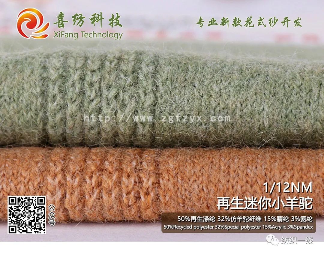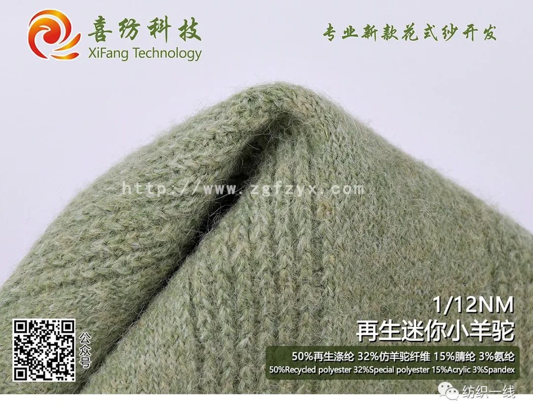 50%再生涤纶 32%仿羊驼纤维 15%腈纶 3%氨纶