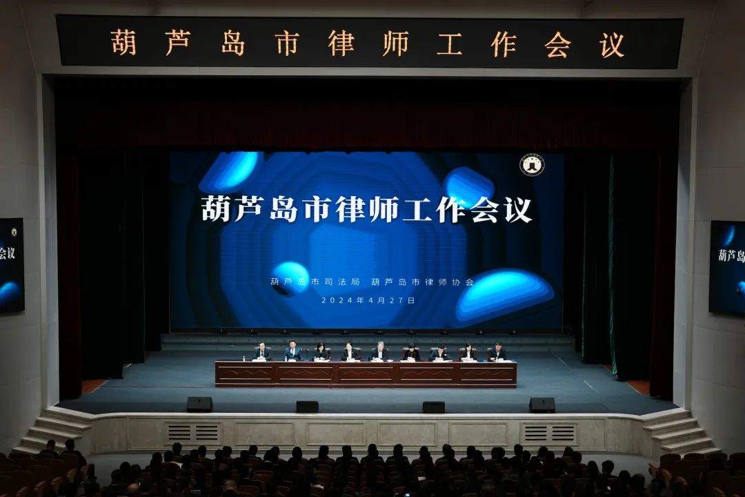 为深入学习贯彻习近平法治思想和习近平总书记关于律师工作的重要指示精神以及中央、省、市三级政法工作和省、市司法行政工作会议精神。葫芦岛市司法局、葫芦岛市律师协会于2024年4月27日,组织召开了2024年度葫芦岛市律师工作大会。葫芦岛市司法局党组书记、局长赵志刚、市司法局副局长、律师行业党委书记魏博、市司法局工作科科长肖丹、各县(市、区)司法局主要领导及市基层法律工作者协会会长出席会议。葫芦岛市律师协会及行业党委班子成员、全市专(兼)职执业律师、实习律师、公职律师代表、法援律师等共计400余人参加会议。市人民检察院党组成员、副检察长白银燕、市中级人民法院党组成员、政治部主任金丹受邀出席会议。会议由魏博副局长主持。