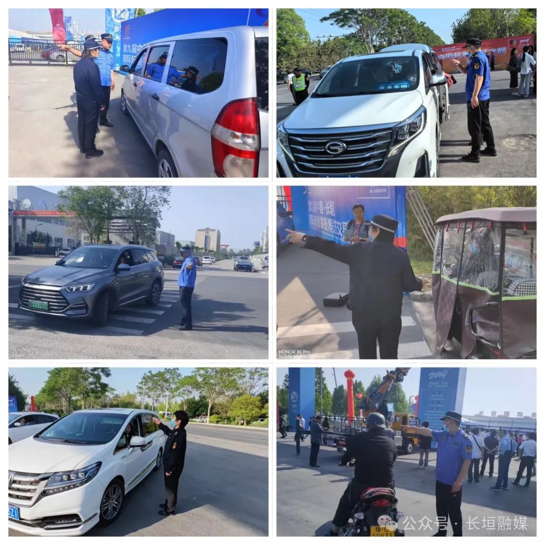 执法大队:全局启动重大节会应急预案,全体执法人员中止休假全员上岗,延长管理时间,在管控区域不间断巡查,确保城区市容秩序持续优良。集中精干力量,抽调执法队员,在会展中心周边各个路口设执勤岗,保障会场秩序。