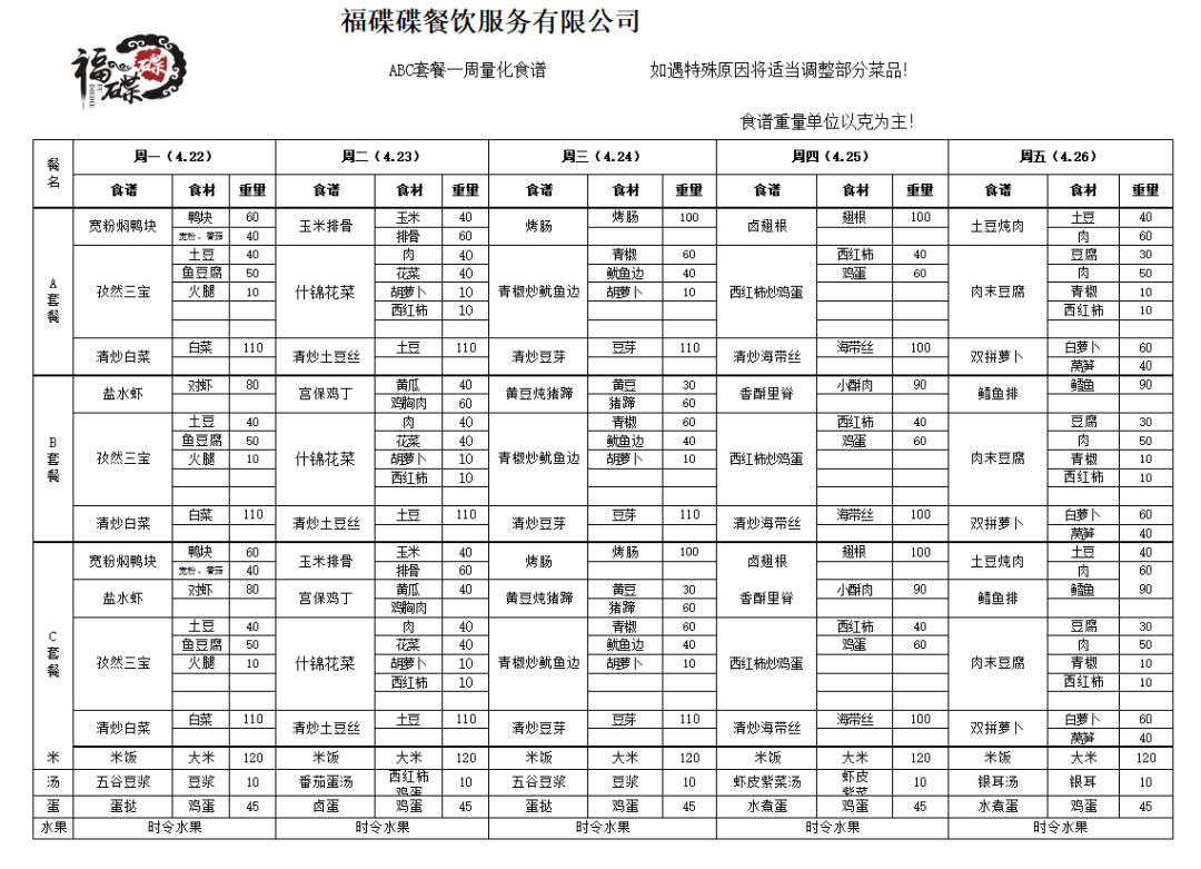 共享大好“食”光|船小集团4月22日—4月26日菜单