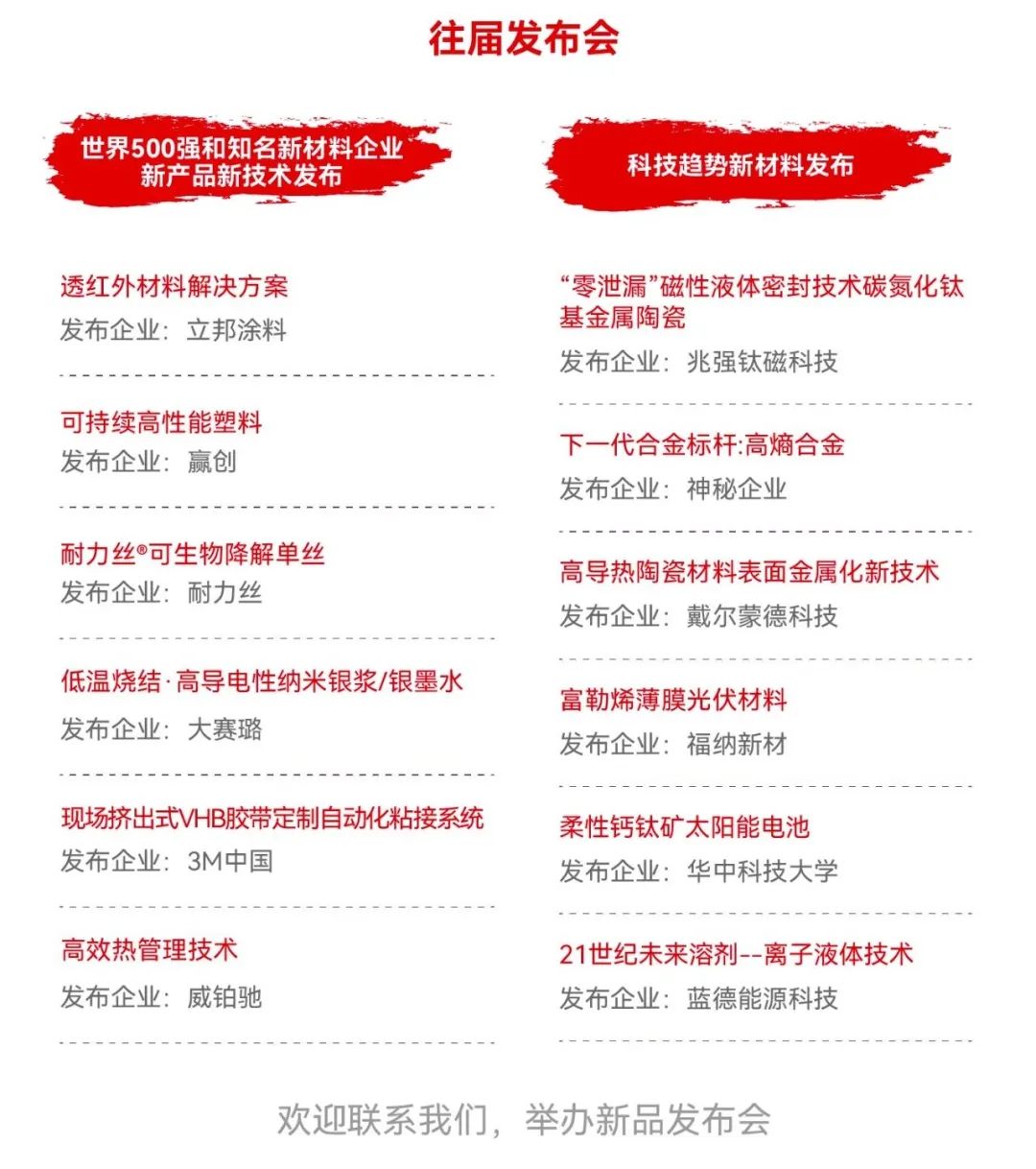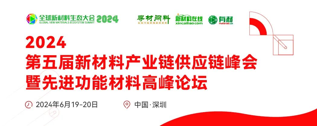 2024第五届新材料产业链供应链峰会暨先进功能材料高峰论坛兹定于2024年6月19-20日在深圳举行,本次峰会将邀请500+国内外优质材料供应商,集中展示新材料领域的新技术、新产品、新趋势,以及海尔、万家乐、东风汽车等200+知名品牌终端现场征集新材料/新工艺/新技术解决方案!通过新品发布及供需对接环节,将优秀的材料解决方案与终端需求进行撮合对接,促进合作交流!