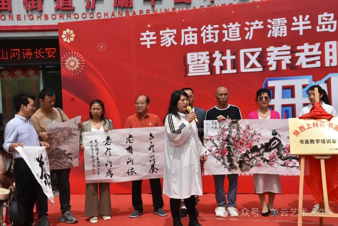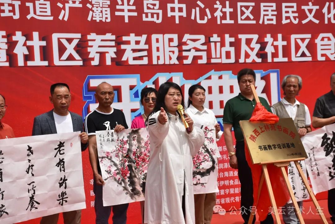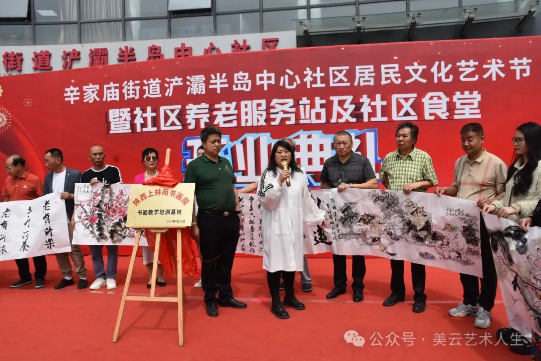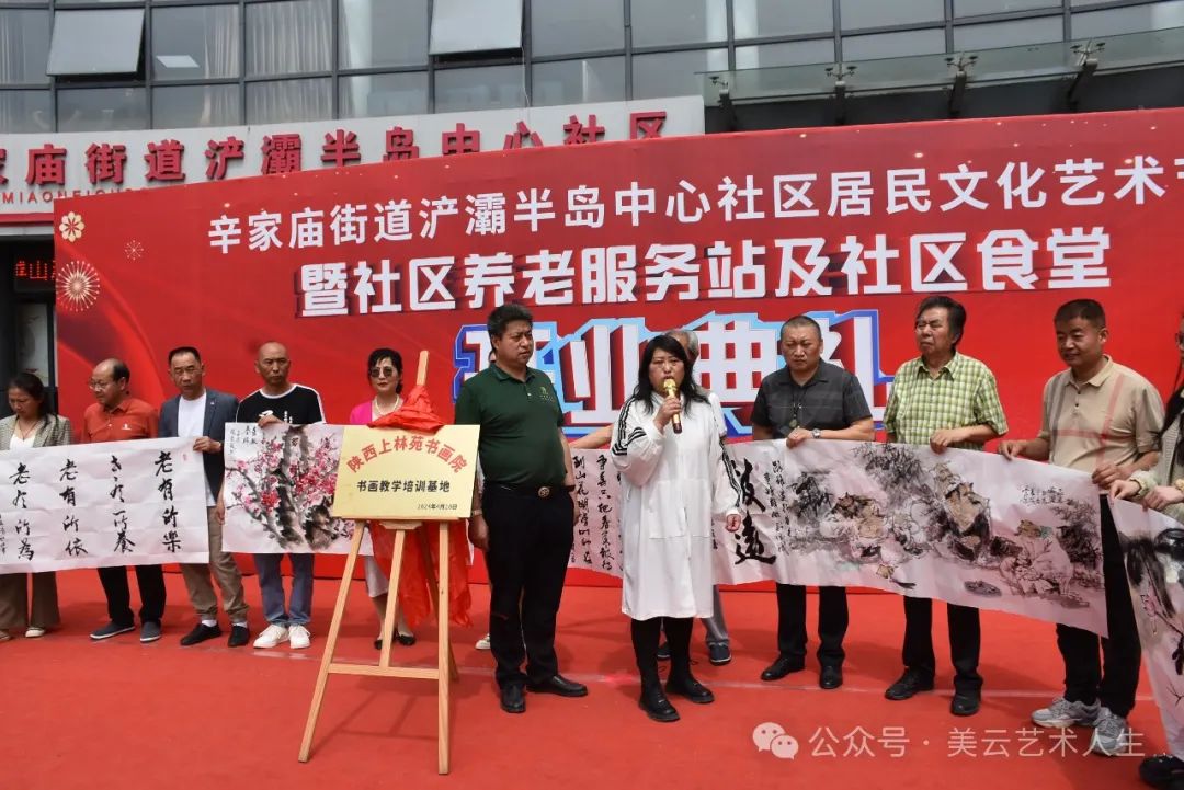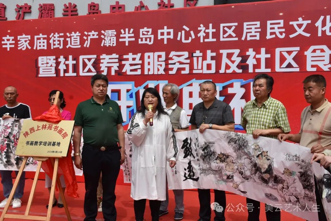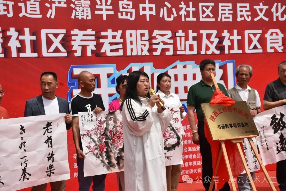 亲爱的朋友们,今天是个特别的日子!2024年4月24日9点,一大早,陕西上林苑书画院的艺术家们就在常务副院长武美云的带领下,满怀热情地前往西安市灞桥区浐灞半岛社区,为我们带来了一个特别的惊喜——书画进社区揭牌仪式! 上午,社区养老服务站及社区食堂正式开业,邀请到未央区民政局副局长杜彦辉、辛家庙街道副主任张延涛、辛家庙街道副主任詹小波、辛家庙街道社会事务科科长张虹参加揭牌仪式