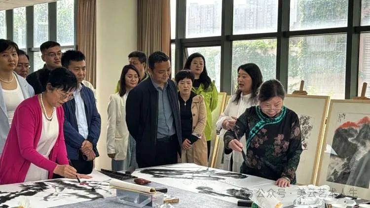 在揭牌仪式之后,艺术家们还参观了周边的社区入驻单位,包括格林夏加儿培训学校。他们走进学校,与孩子们亲切交流,分享书画艺术的魅力,让孩子们在快乐中学习,感受艺术的无限可能。