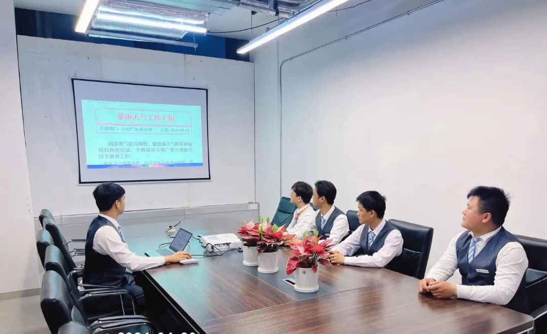 在广州鹏源大厦、深圳商务公园等项目,在雨势渐小后,工程人员迅速检查室内外雨水井、水泵、排水沟等;同时加强检查配电设备防雷击装置,保证设备设施正常运行。