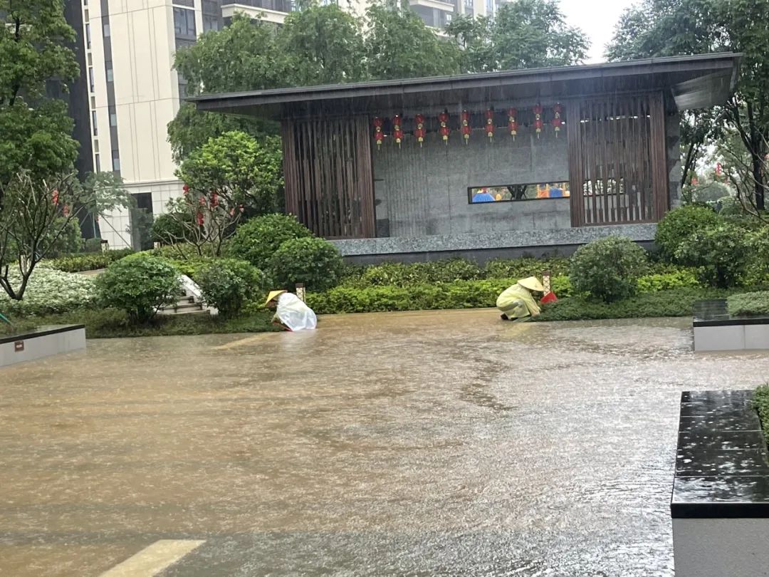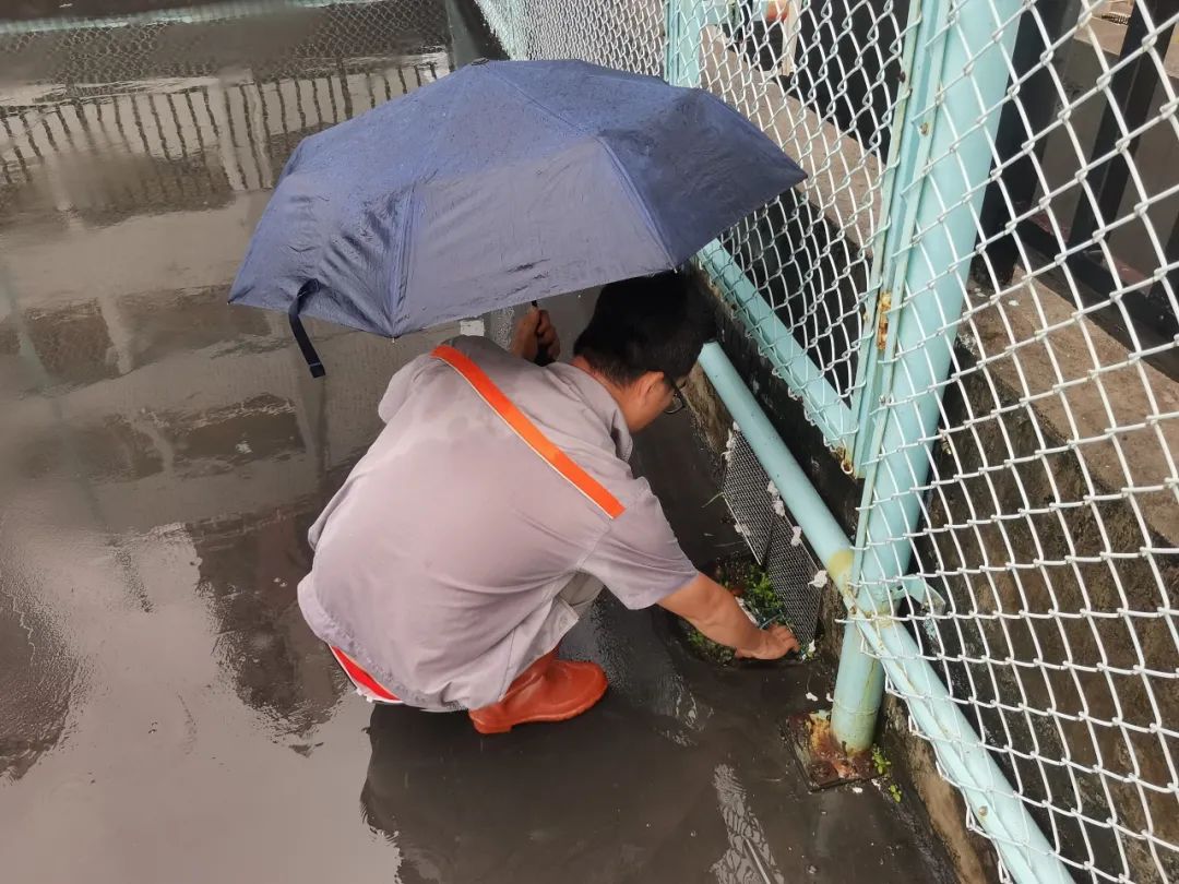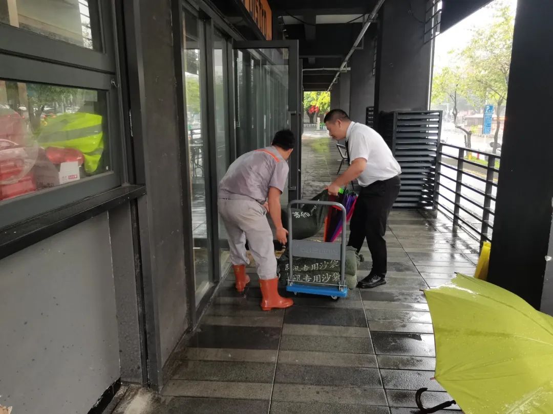 根据雨势情况,各项目立即启动台风暴雨应急预案,严格落实管理人员值班制度,做好暴雨前对项目天台,门窗,地漏,排水沟及水泵房,设备机房等重点部位排查,充分准备各类抢险救援物资,全力做好汛期项目安全防范工作,及时开展排查,提升现场巡查频次,及时发现清理下水道,排水渠道堵塞情况,加强重点部位沙袋围挡,清理积水,全力做好暴雨安全防范工作。