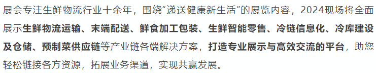 展会以“递送新生活”为主旨,汇集冷链行业的智囊团们,围绕食品供应链、鲜食加工包装、冷链物流等热点,以前瞻视角解析发展方向,以实践经验破解行业发展瓶颈,共享生鲜物流市场新商机。