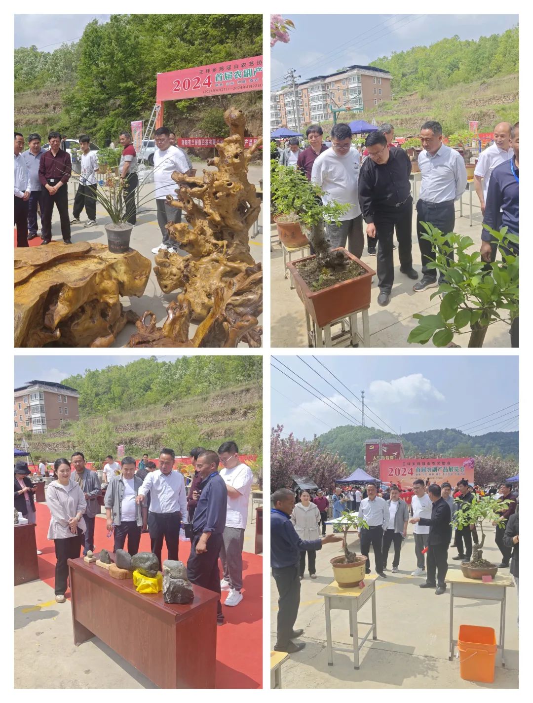 王坪乡鸡冠山农艺协会于4月21日--22日在椒沟村文化广场举办首届盆景、奇石、兰花根雕、书法、手工艺术品等农副产品展览会。众多爱好者齐聚一堂,欣赏巧夺天工的奇石、根艺、盆景等文旅精品。