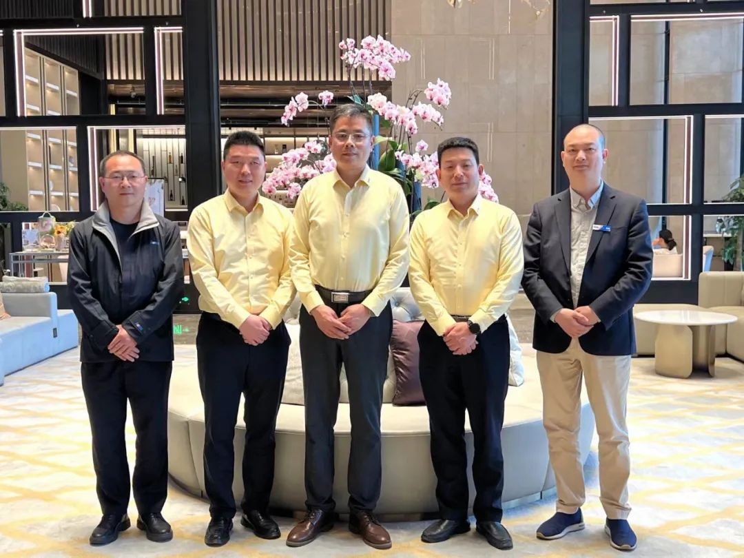 照片从左往右依次为:张兵董事、周飞董事、周兵轮值董事长、刘春华董事、楼亦剑董事。