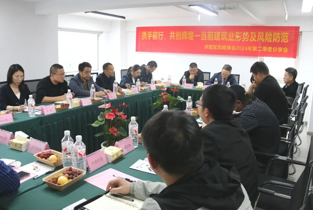 4月25日下午,和睦商会开展了以“携手前行,共创辉煌--当前建筑业的形势及风险防范”为主题的分享会。会议中,政企齐聚一堂,共同探讨了和睦街道当前建筑业形势及发展方向等内容。区住建局党委委员、副局长傅军,工商联副主席冯俊虎,和睦街道办事处副主任赵秉,10余家商会企业参会。