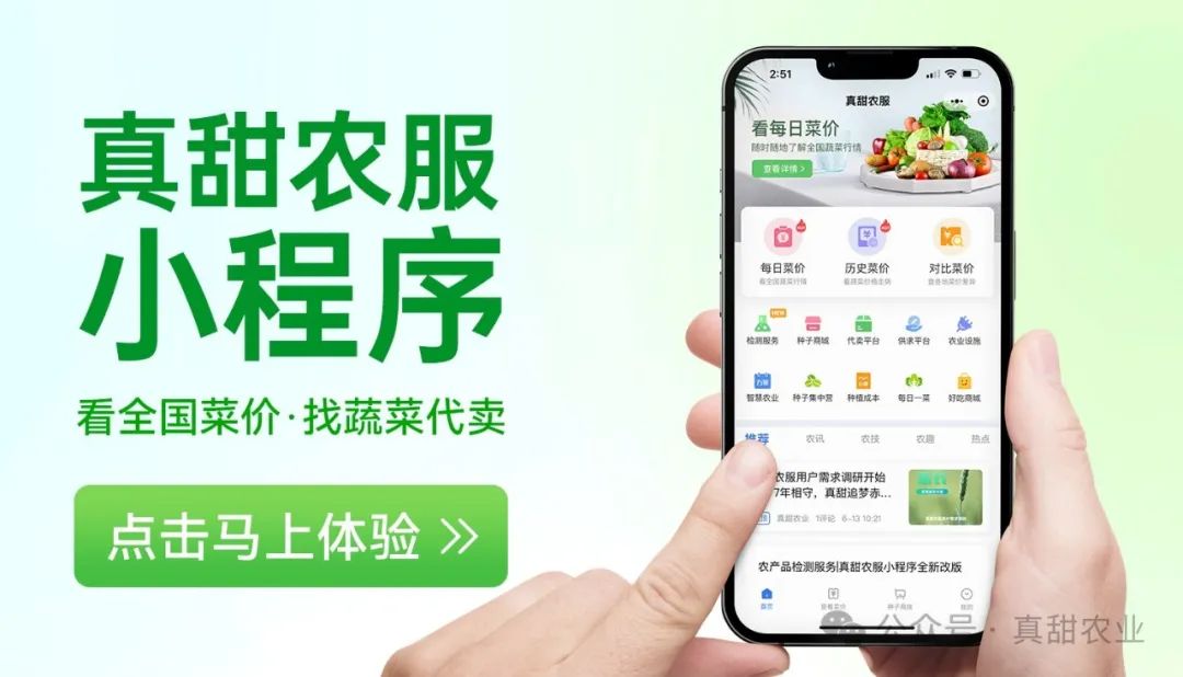真甜农服小程序,主要提供农批菜价行情、蔬菜代采代卖、供求信息发布、农资商城、农残检测、智能种植软硬件等全方位的农业服务。2016年以来,已累计服务数百万农业从业者。