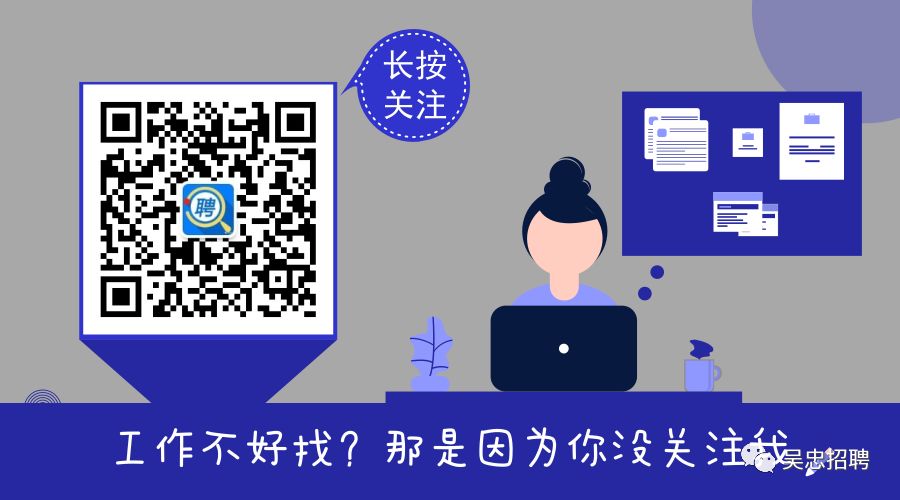 温馨提示:感谢你关注吴忠招聘微信公众平台,我们将竭诚为你提供招聘信息服务!因求职招聘诈骗现象较多,前往应聘时请提高警惕!谨防上当受骗!祝大家顺利找到好工作!