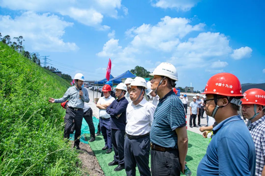 观摩组首先来到永津高速项目K10+400-600标段,现场观摩了生态基材的使用情况。在随后的观摩交流会上,来自成都理工大学教授徐华向观摩成员详细汇报了永津项目填方边坡生态基材防护试用情况,并表示该生态基材防护使用效果比较理想,能节约周期,降低成本投入,可以大面积的推广使用。据悉,渝赤叙(永壁永津)高速公路项目公司直管的永壁、永津及渝赤叙各标段项目将根据现场条件采用该生态基材防护。