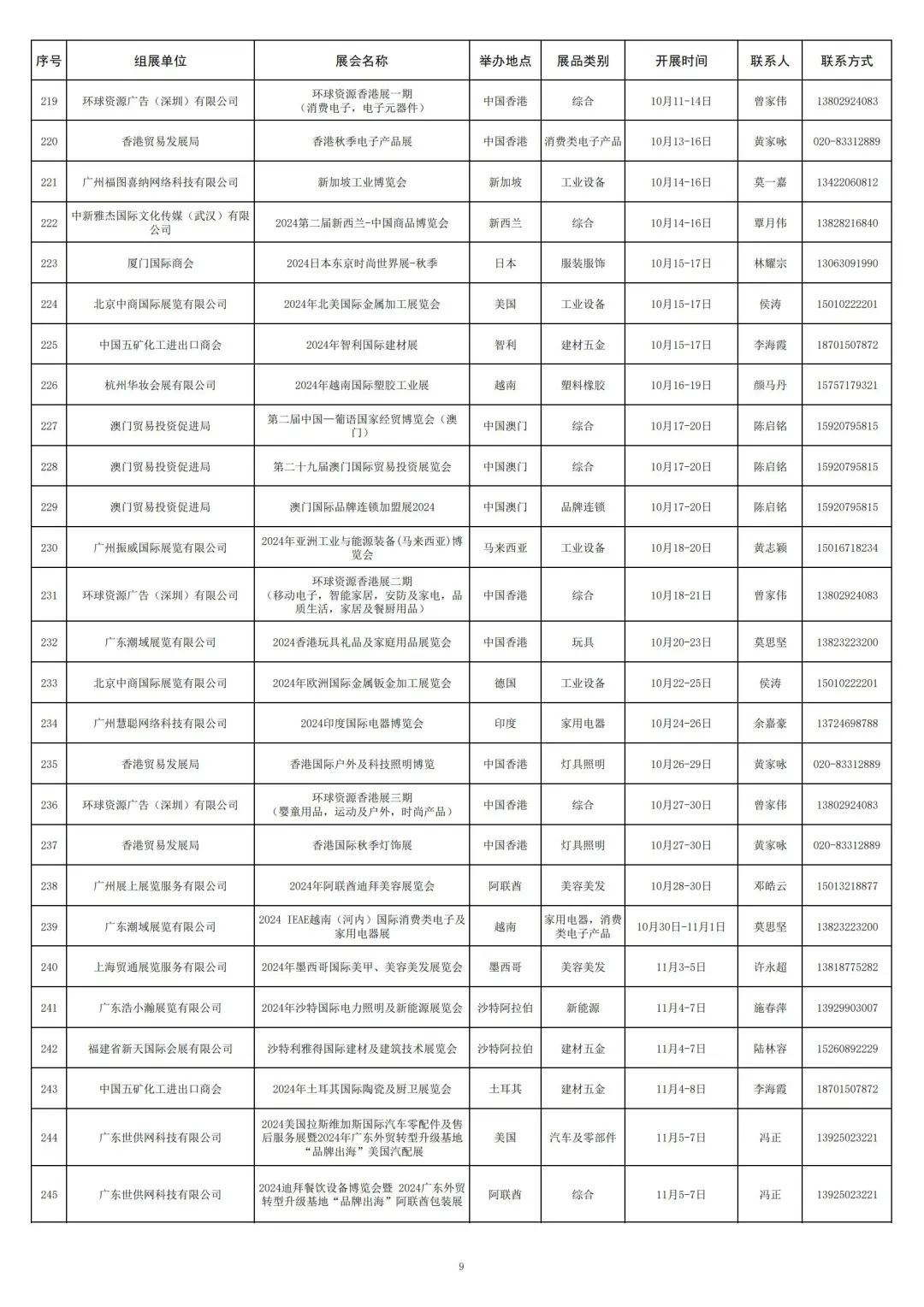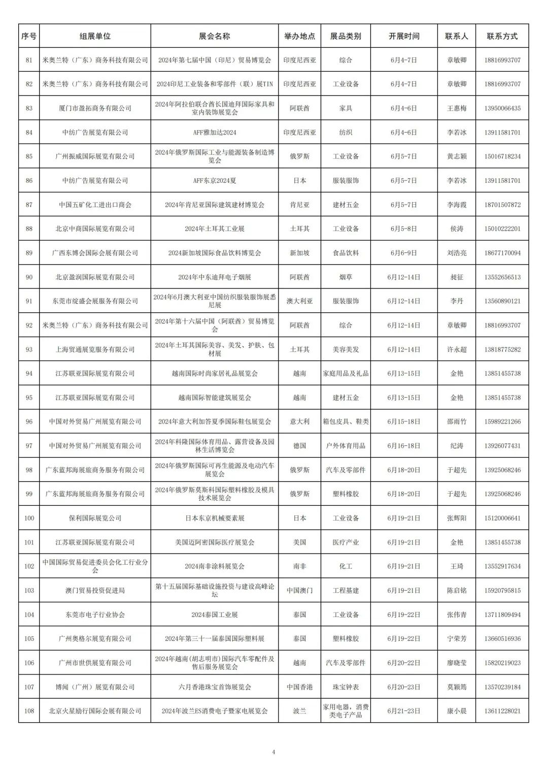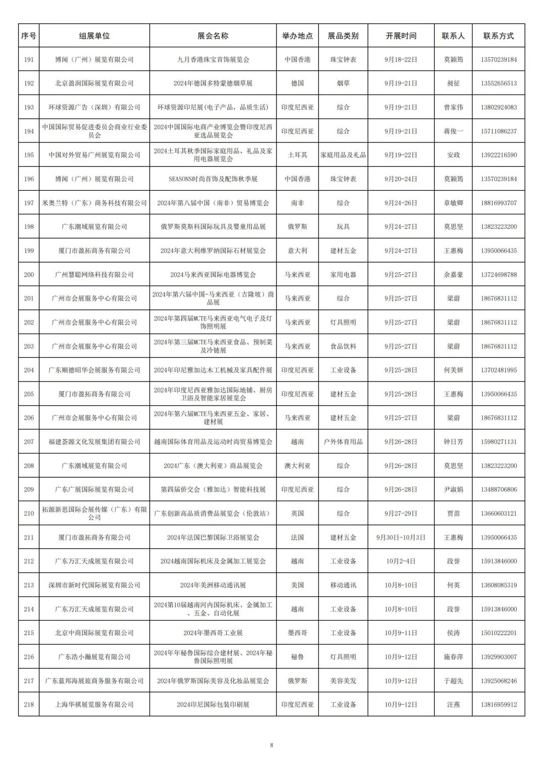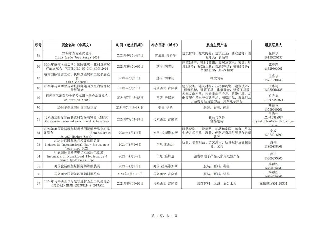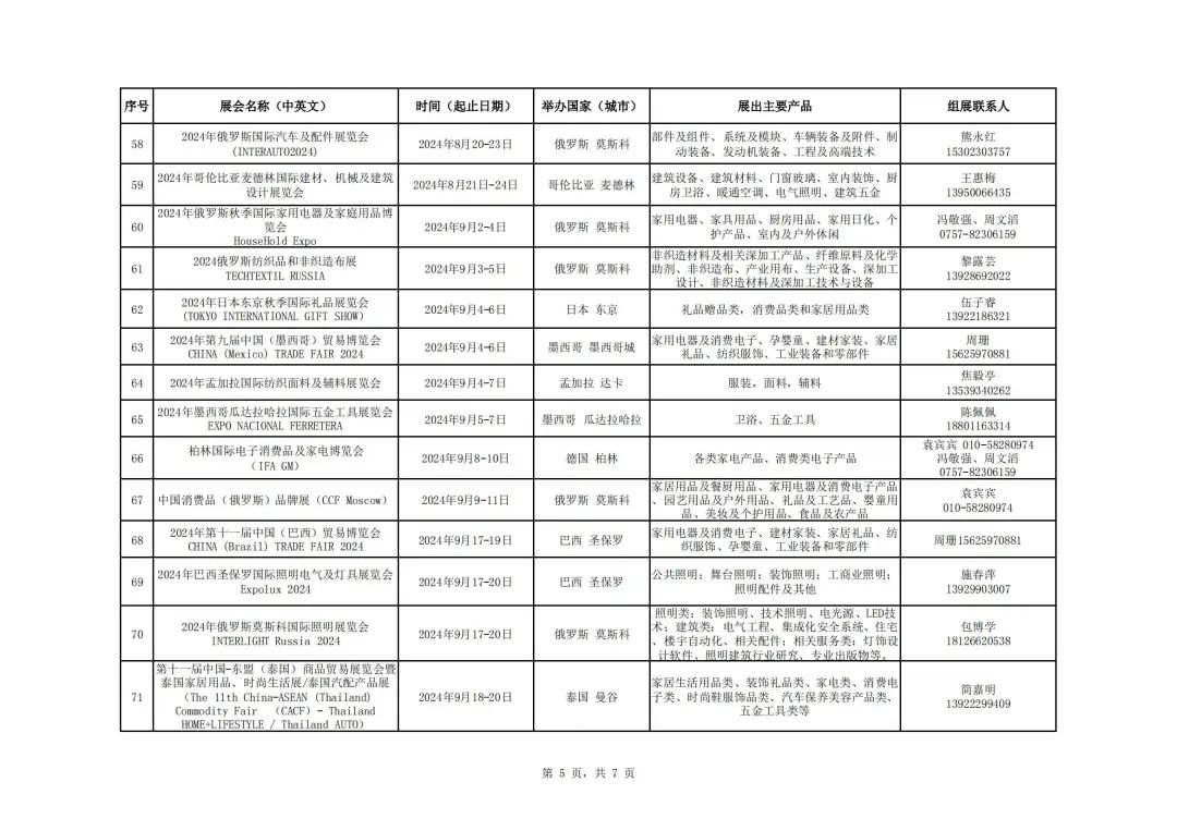 PART 4:2024年佛山市重点推荐组织的境外国际性展会项目汇总表