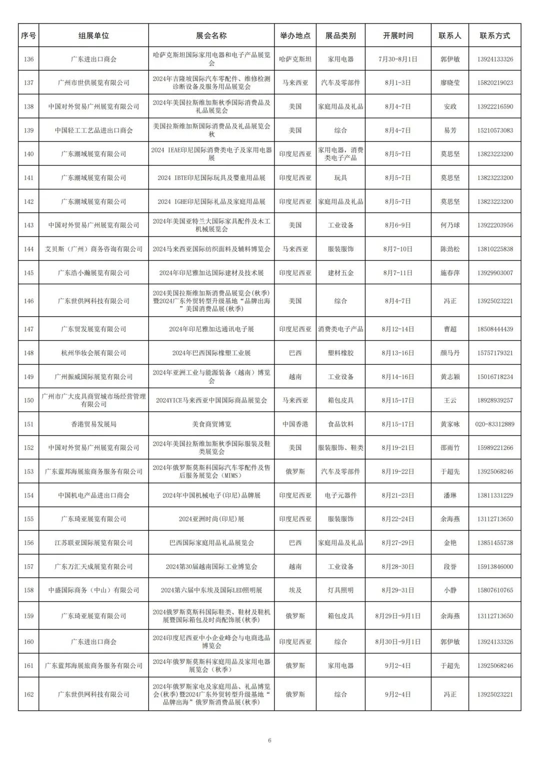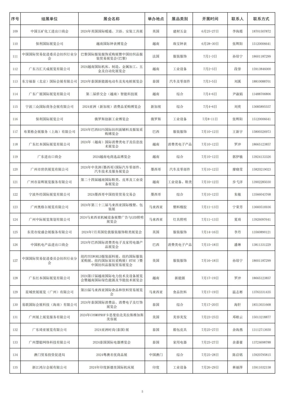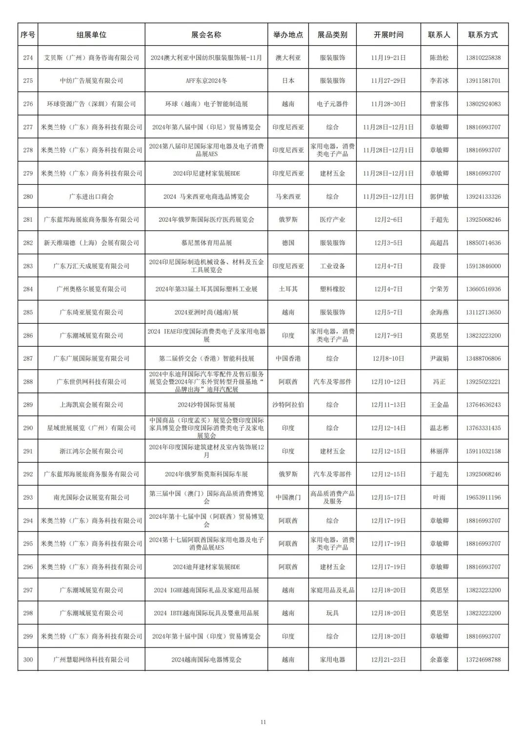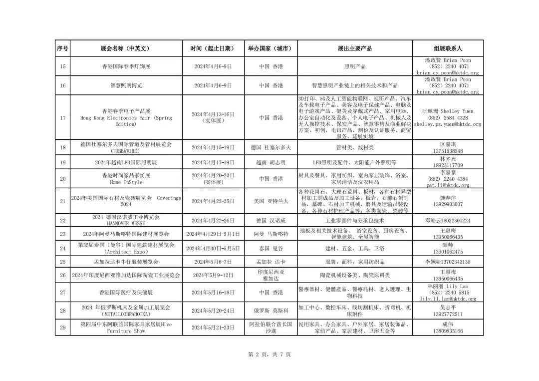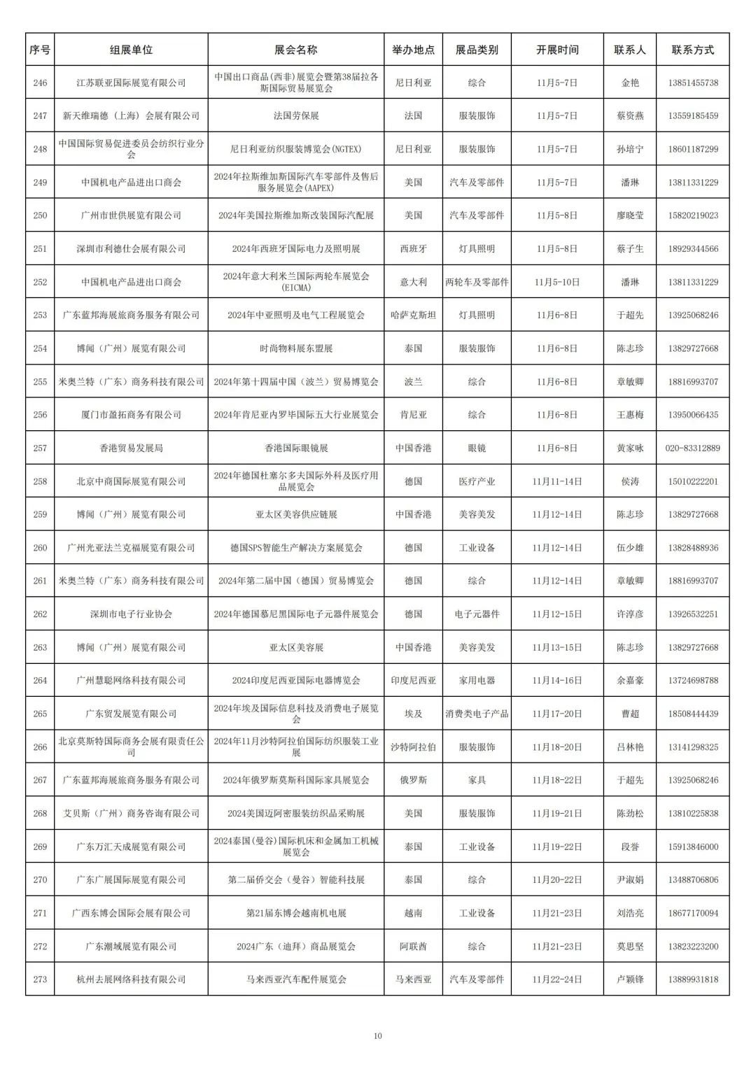 PART 4:2024年佛山市重点推荐组织的境外国际性展会项目汇总表
