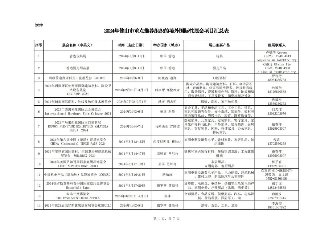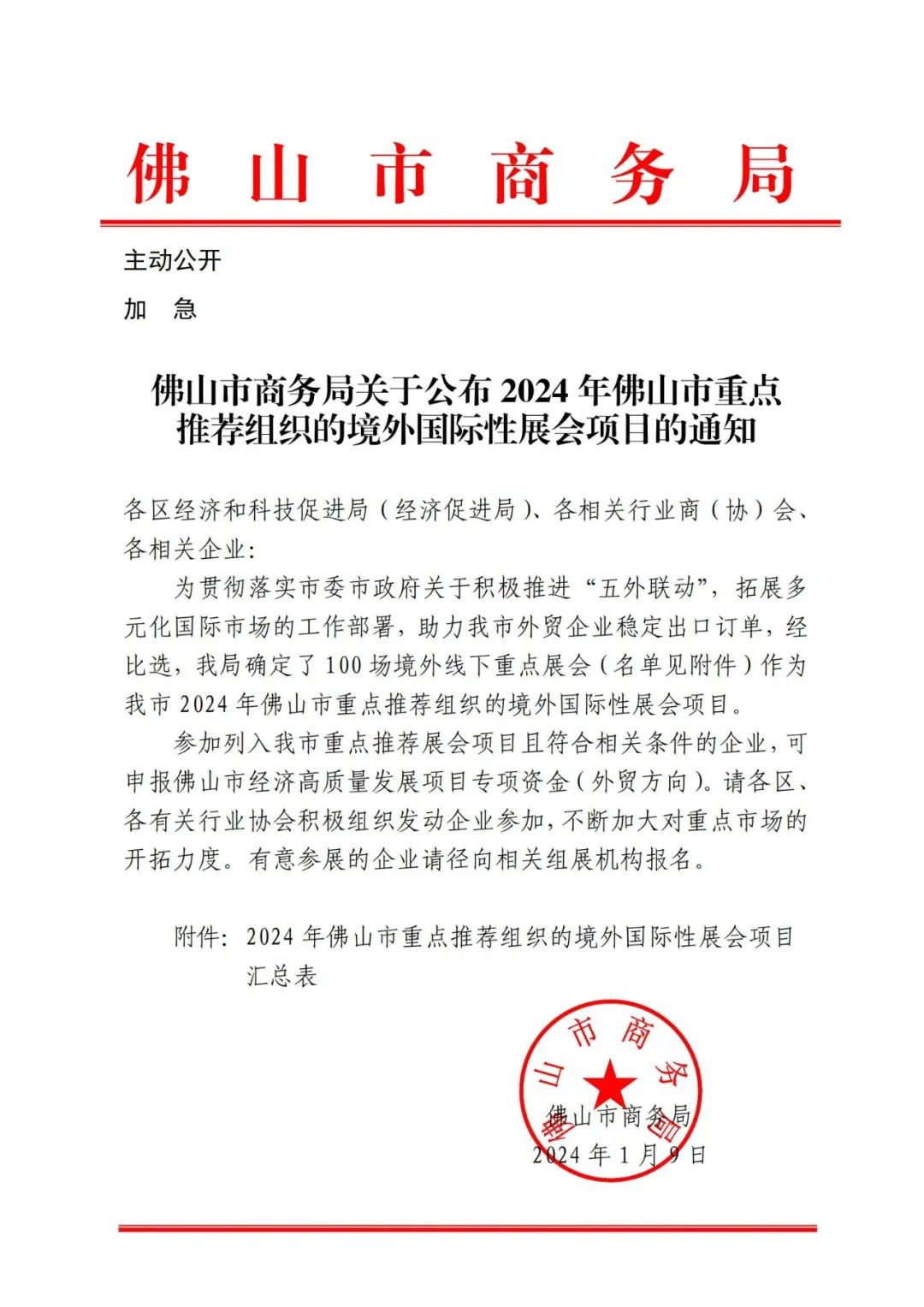 PART 1:佛山市商务局关于公布2024年佛山市重点推荐组织的境外国际性展会项目的通知